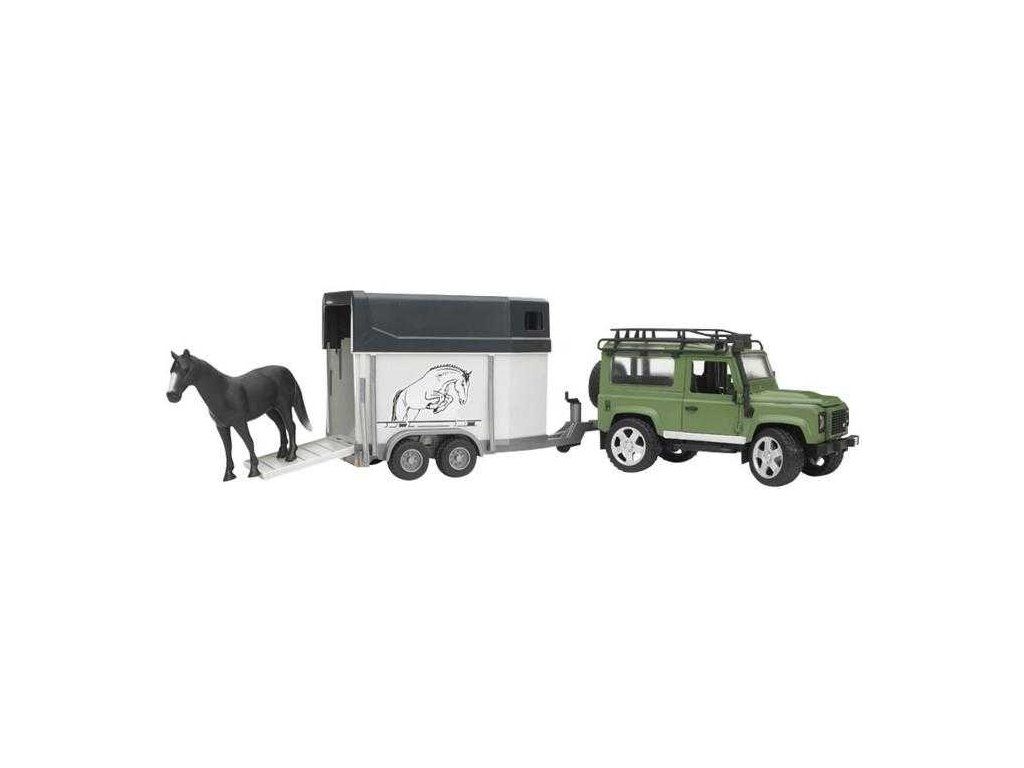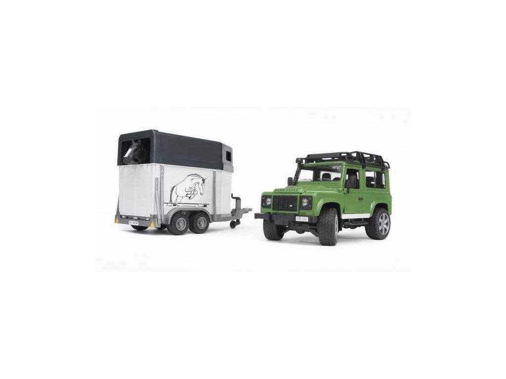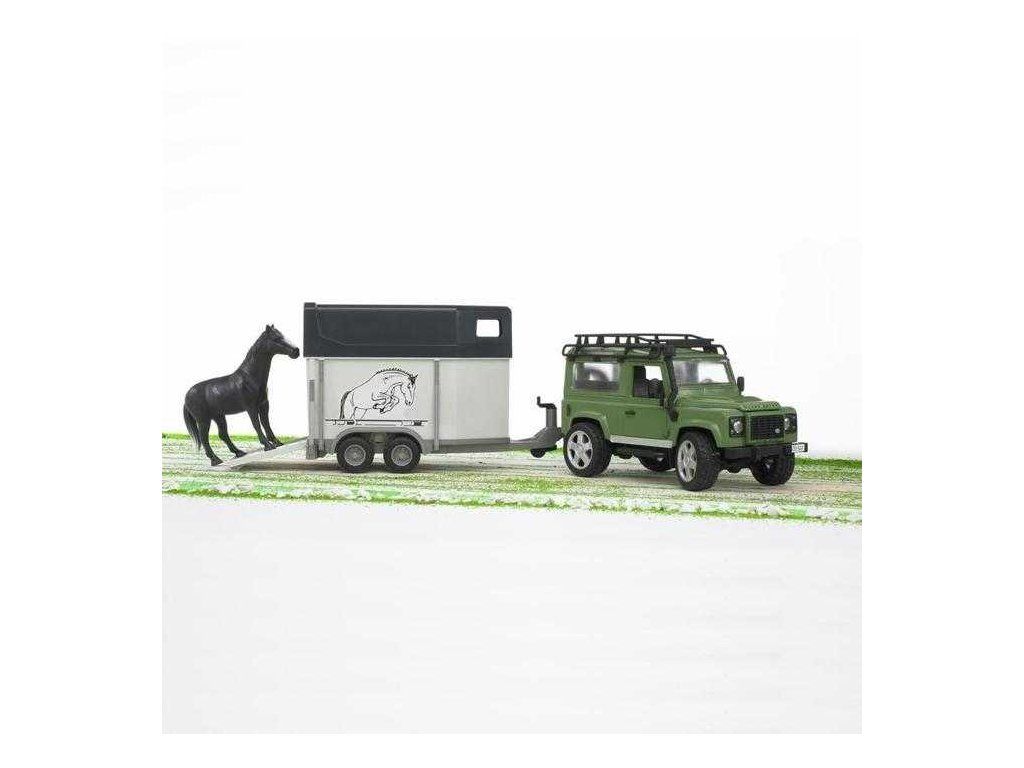 Bruder LAND ROVER DEFENDER s prepravníkom na kone je detailne spracované terénne vozidlo s množstvom realistických funkcií.