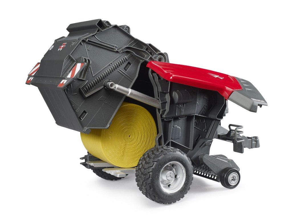 Pneumatiky s výrazným dezénom zabezpečujú stabilitu a realistický vzhľad modelu. Lis je kompatibilný s traktormi Bruder radu 1000 až 3000.