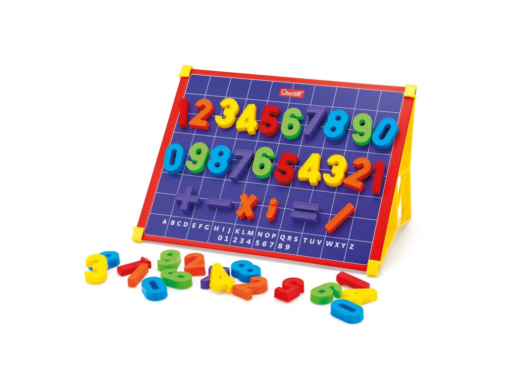 Magnetická tabuľka použiteľná 2 spôsobmi – na skladanie jednoduchých početných úloh alebo na písanie a kreslenie zmazateľným popisovačom na druhej strane. Deti si hravou formou precvičia základné matematické operácie, rozvíjajú logické myslenie aj kreativitu pri kreslení. Praktické riešenie umožňuje po skončení hry všetky dieliky jednoducho uložiť.