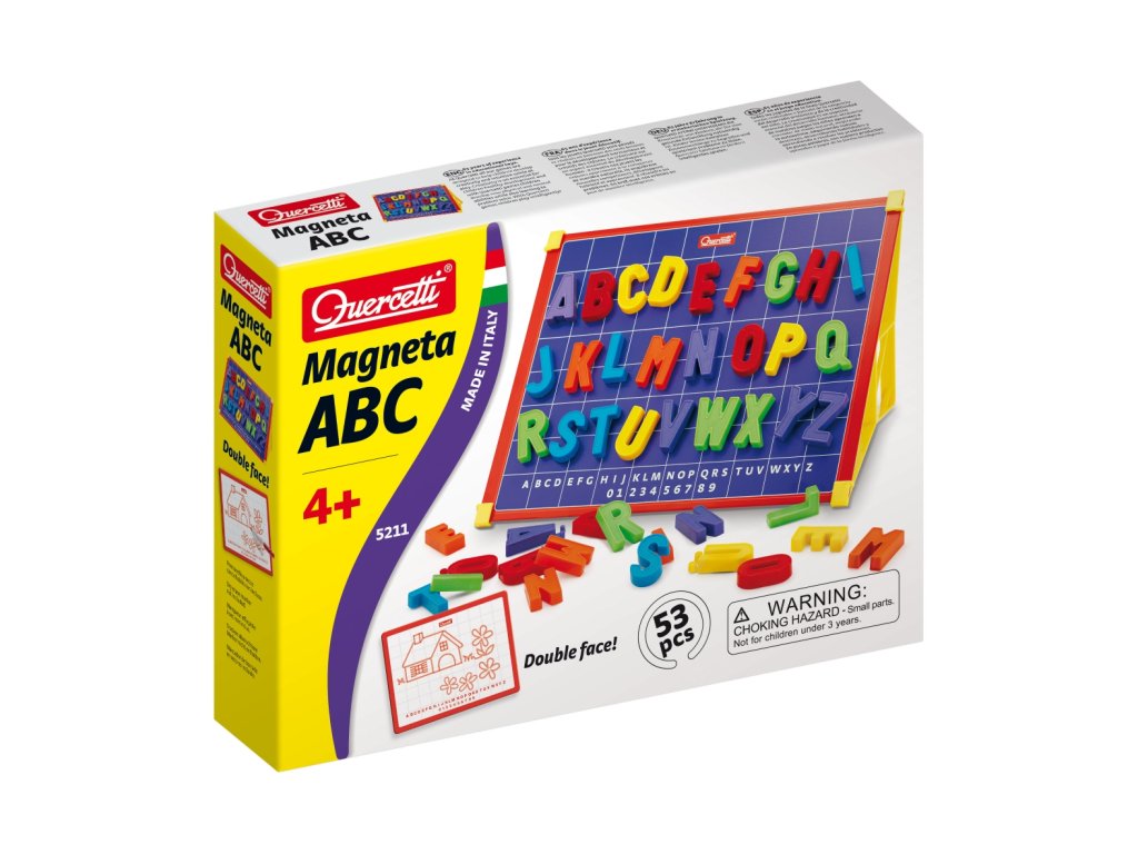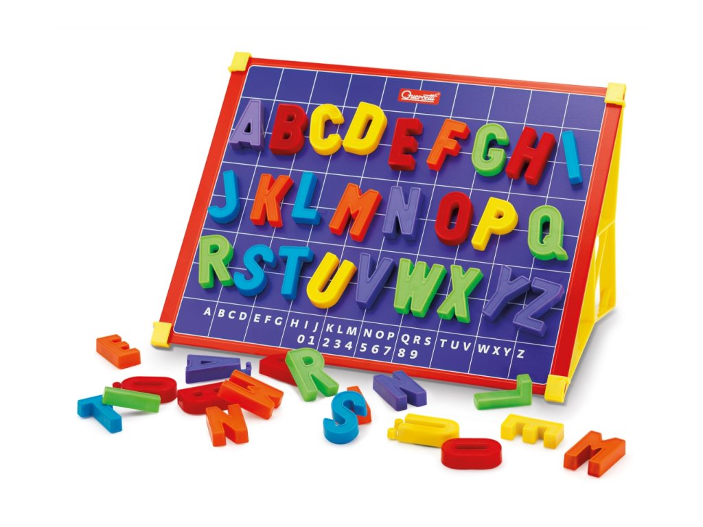 Magnetická tabuľka použiteľná 2 spôsobmi – na hranie s magnetmi alebo na písanie a kreslenie zmazateľným popisovačom na bielej strane. Deti si hravou formou precvičia písmená veľkej abecedy, rozvíjajú jemnú motoriku, fantáziu a základné jazykové zručnosti. Tabuľka zároveň poskytuje priestor na kreatívne kreslenie a prvé pokusy s písaním.
