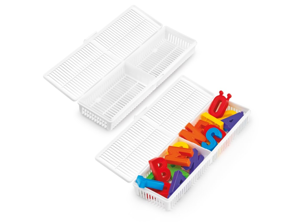 Magnetické písmená spolu s písacími potrebami môžete po skončení hry jednoducho uložiť do dvoch podlhovastých puzdier, takže všetko zostane prehľadne usporiadané a pripravené na ďalšie použitie.