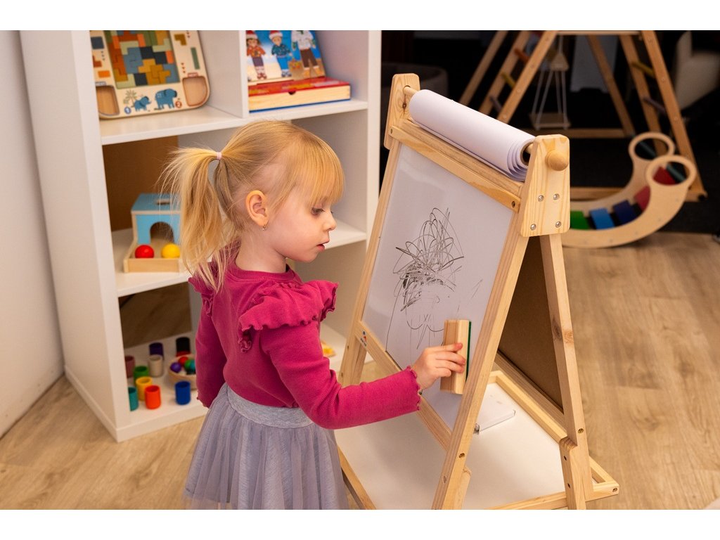 Táto drevená, obojstranná a multifunkčná nástenka sa určite stane nepostrádateľným spoločníkom každého dieťaťa.