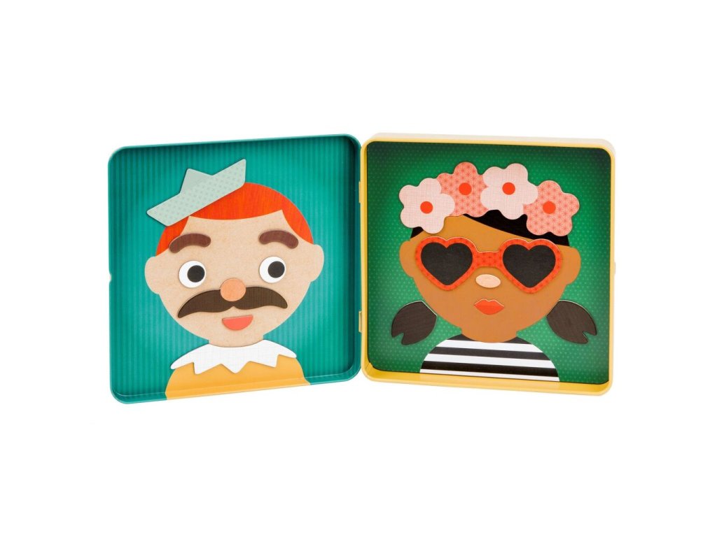 Pripnite magnety dovnútra škatuľky a vytvárajte vtipné tváre! Deti môžu kombinovať jednotlivé magnetické dieliky a vytvárať množstvo veselých a originálnych výrazov. Kreatívna hra rozvíja fantáziu, jemnú motoriku aj schopnosť kombinovať rôzne tvary.