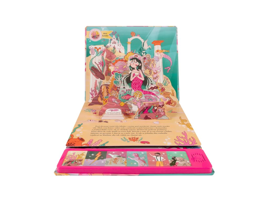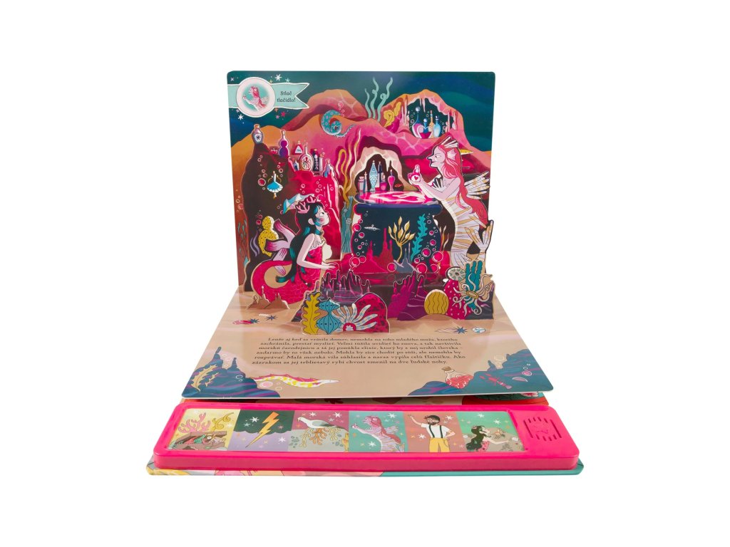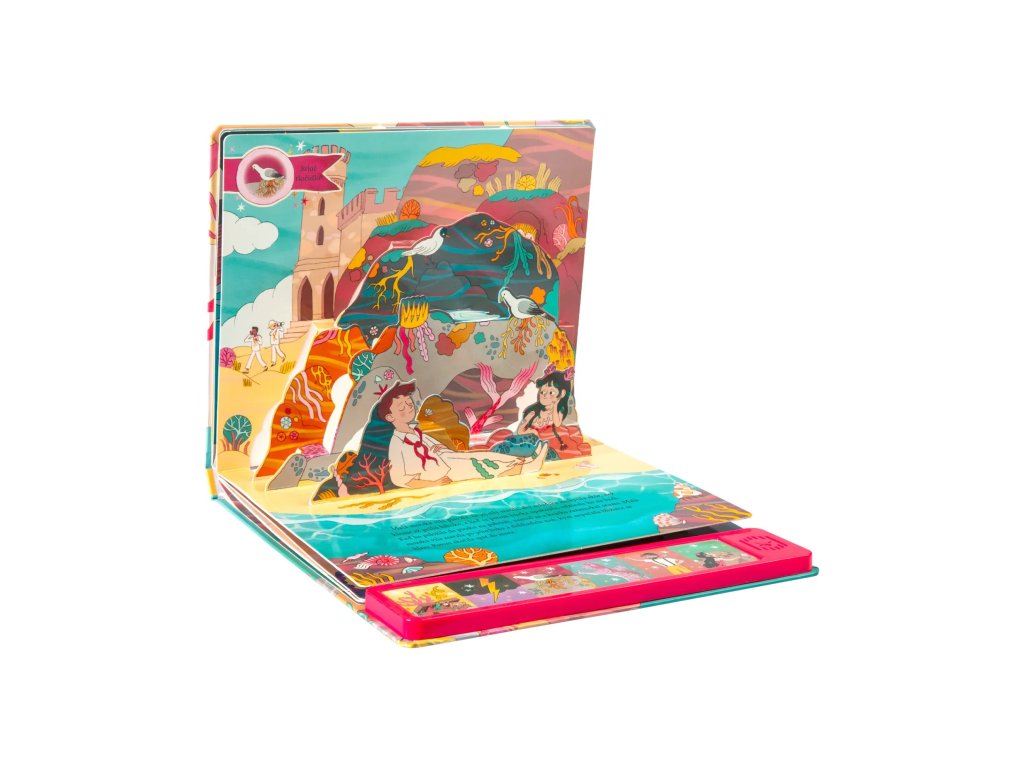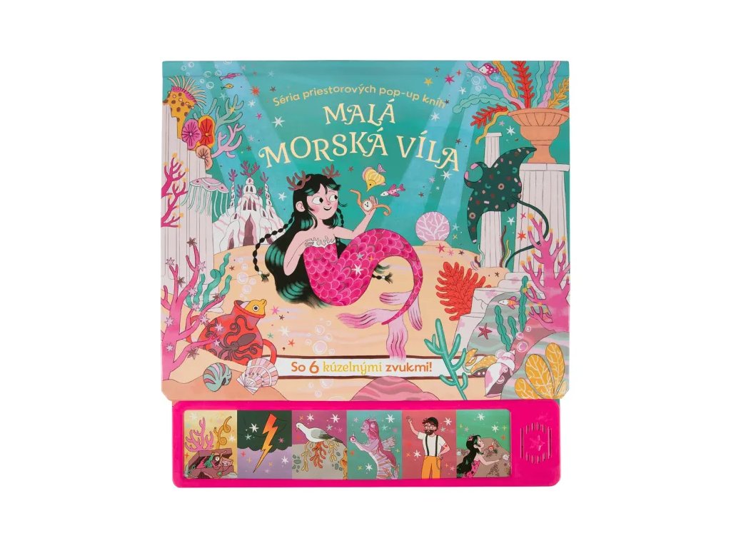 Detská kniha o Malej morskej víle prináša magický 3D pop-up zážitok pre najmenších čitateľov. Kniha obsahuje 6 strán s nádhernými 3D efektmi a zvukový panel so 6 ikonami, ktoré po stlačení zahrajú zodpovedajúci zvuk.