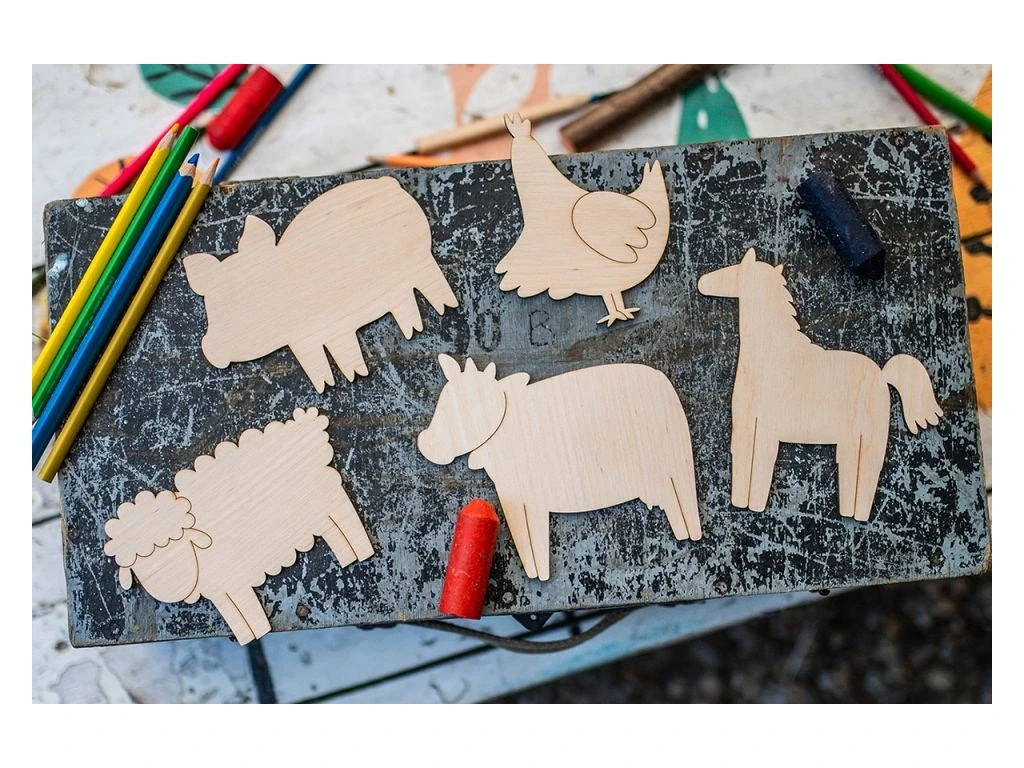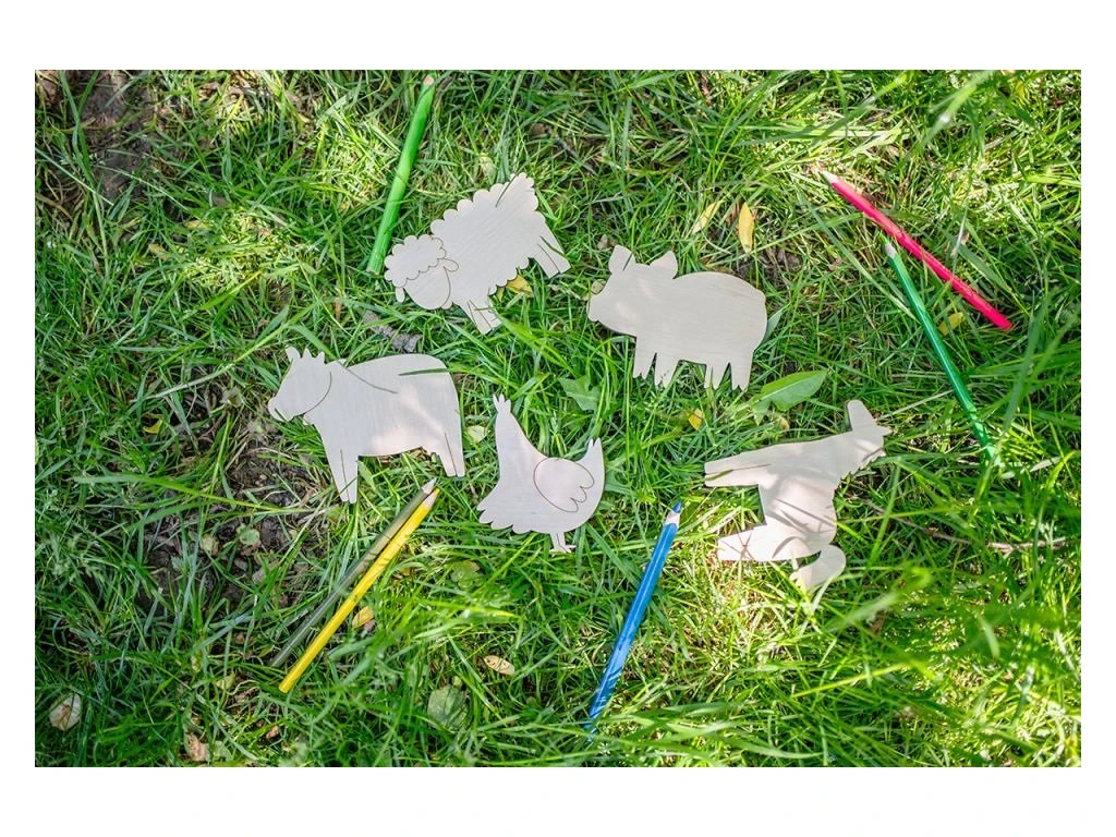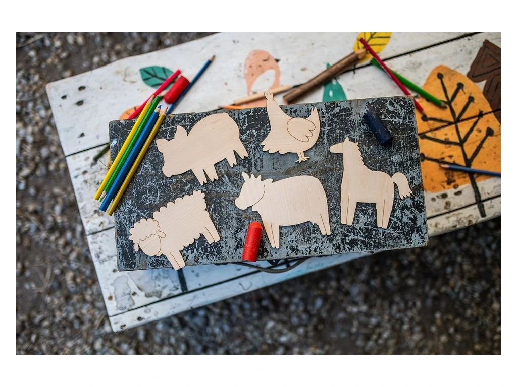 Jedinečná sada drevených zvieratiek z farmy otvára brány do nekonečného sveta fantázie. Každé zvieratko (prasiatko, ovečka, koník, sliepočka, kravička) je ručne vyrezávané z kvalitného brezového dreva. Neváhajte a vymaľujte jednotlivé zvieratká farbami podľa vlastnej predstavivosti alebo ich jednoducho použite ako šablónu pri obkresľovaní. Každý dielik v tejto sade spĺňa prísne bezpečnostné normy a má certifikáciu CE. Súčasťou balenia sú farebné pastelky.