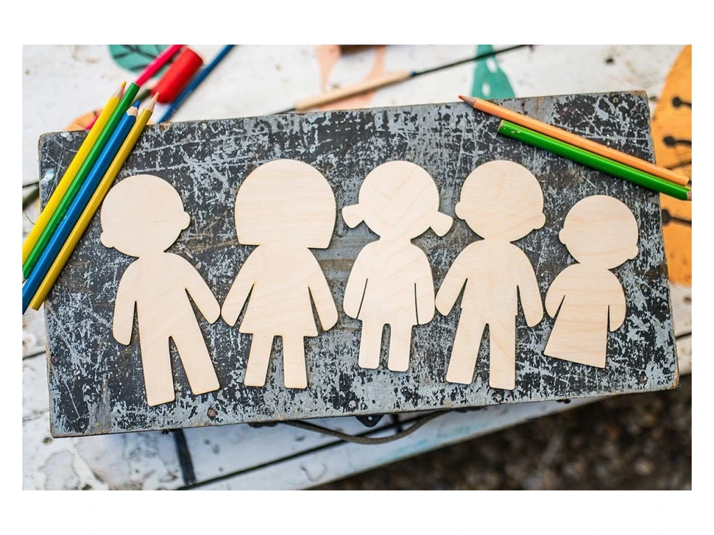Jedinečná sada drevených postavičiek rodiny otvára brány do nekonečného sveta fantázie. Každá postavička je ručne vyrezávaná z kvalitného brezového dreva. Neváhajte a vymaľujte jednotlivé postavičky farbami podľa vlastnej predstavivosti alebo ich jednoducho použite ako šablónu pri obkresľovaní. Vytvorte si svoju vlastnú rodinku! Každý dielik v tejto sade spĺňa prísne bezpečnostné normy a má certifikáciu CE. Súčasťou balenia sú farebné pastelky.