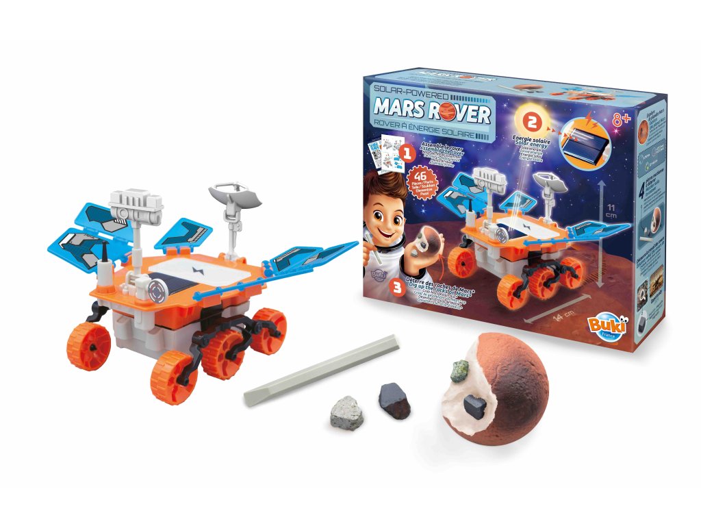 - Autentická geológia – súčasťou je blok sadry vo formáte planéty Mars, z ktorého deti vykopú 4 skutočné horniny: andezit, magnetit, hematit a olivín – podobné tým, ktoré objavili roboty na Marse.