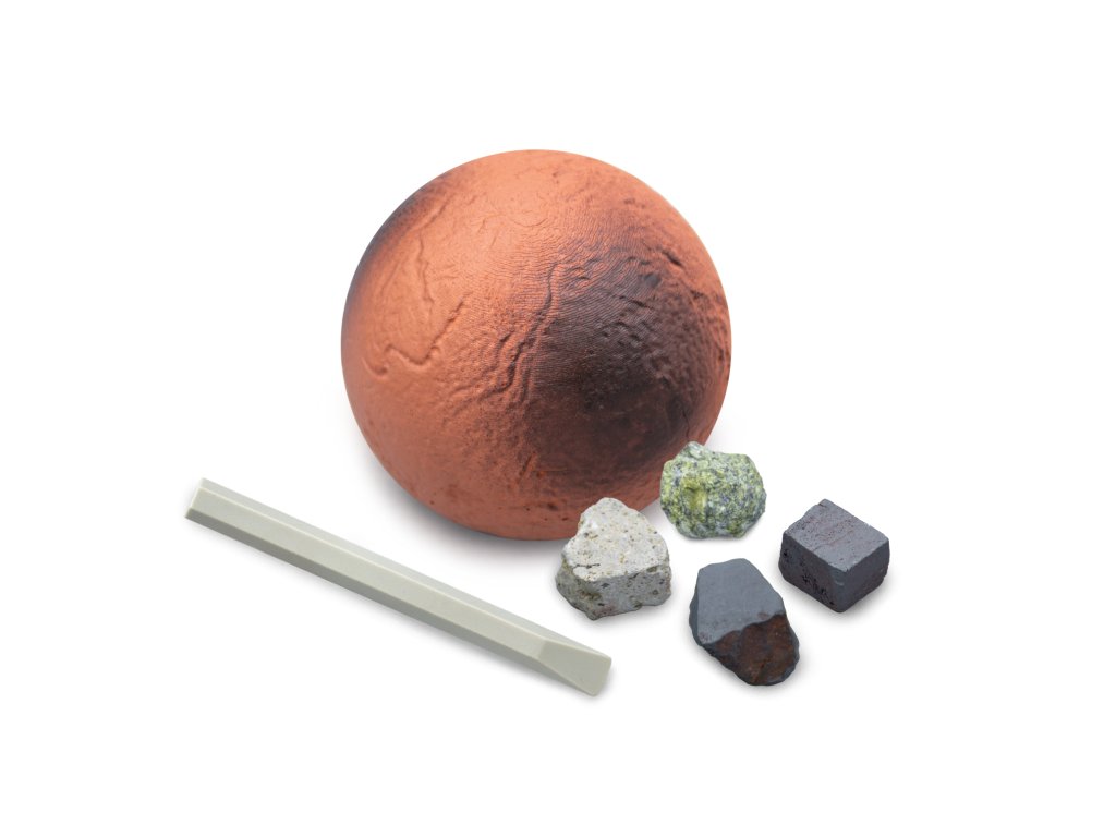 - Blok sadry v tvare planéty Mars s ukrytými 4 skutočnými horninami (andezit, magnetit, hematit, olivín)