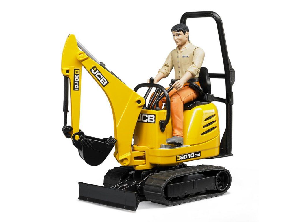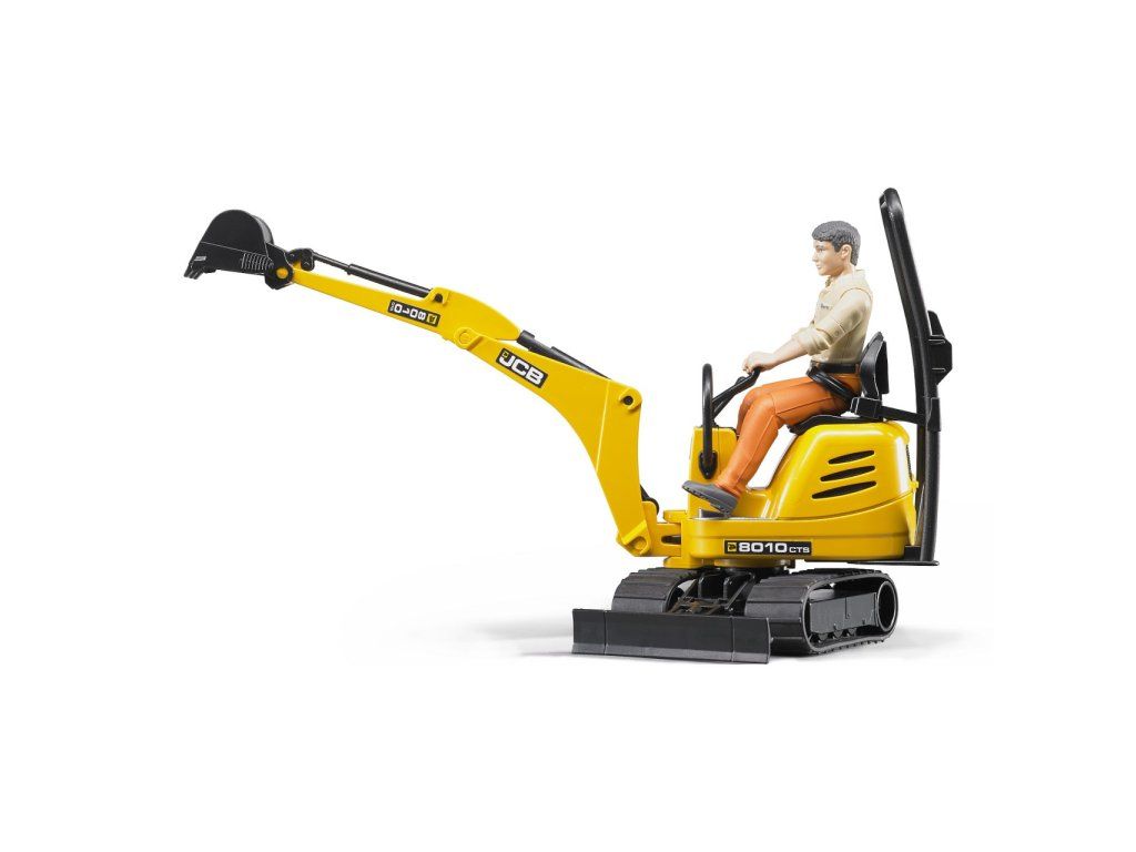 Bruder mikrobager JCB 8010 CTS s figúrkou je pásový minibager s otočnou kabínou, funkčným ramenom so lyžicou a figúrkou pracovníka.