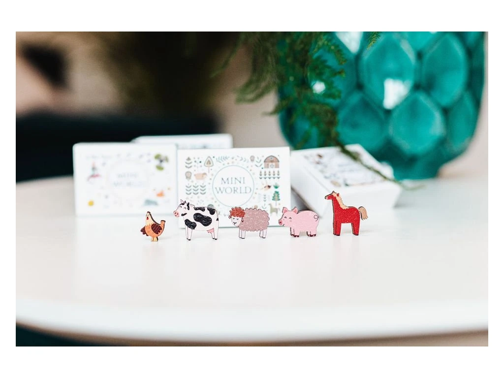 V maličkostiach je krása... Táto drobná krabička veľkosti zápalky ukrýva celý hrací svet plný malých drevených mini hračiek a drevených figúrok veľkosti 14–25 mm.