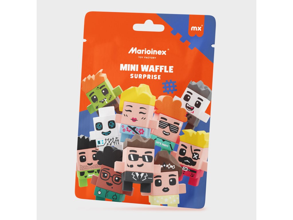 Marioinex Mini Waffle Surprise je tajomná kapsula s prekvapením ukrytým vo vnútri. Každé balenie obsahuje náhodnú figúrku hrdinu a mini stavebnicu, z ktorej si môžete postaviť malú budovu patriacu k danej postave.