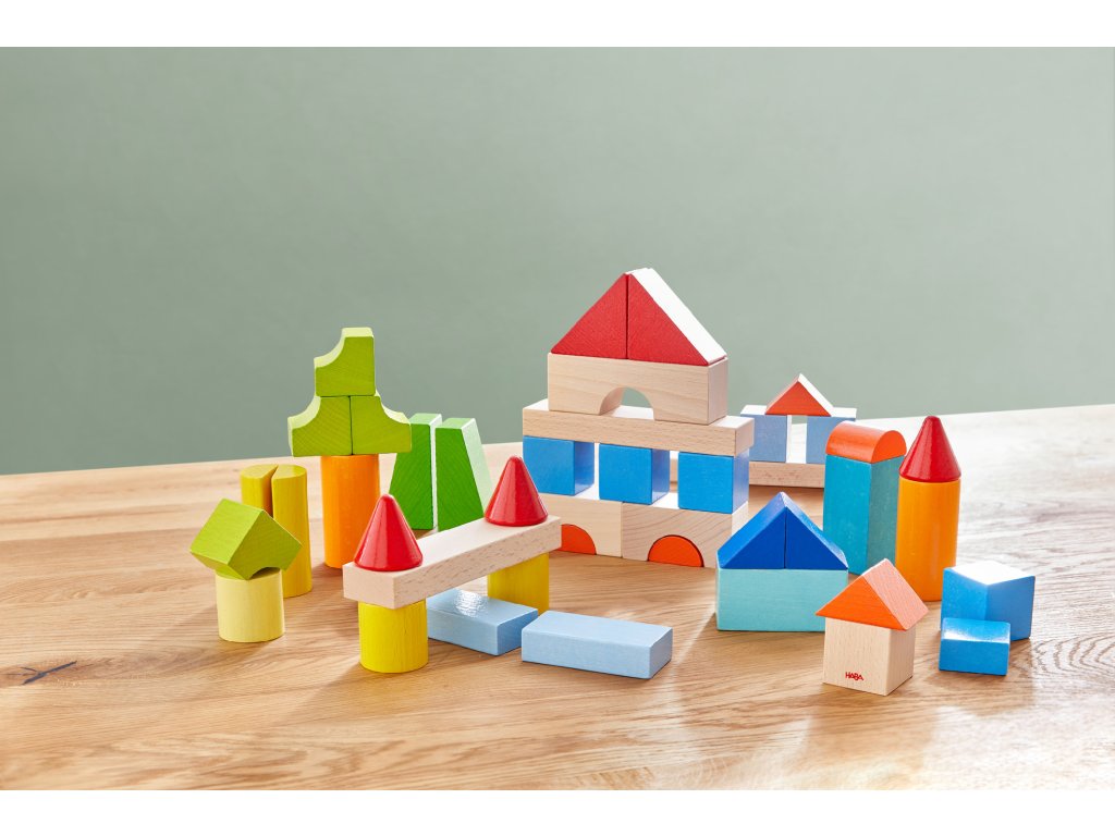 Tieto farebné stavebné kocky sú ideálne pre malé detské ruky. Prvé pokusy so stavaním sa menia na umelecké dielka plné tvarov a žiarivých farieb. Deti sa stávajú vynaliezavými architektmi a vytvárajú jedinečné stavby a fantastické svety.
