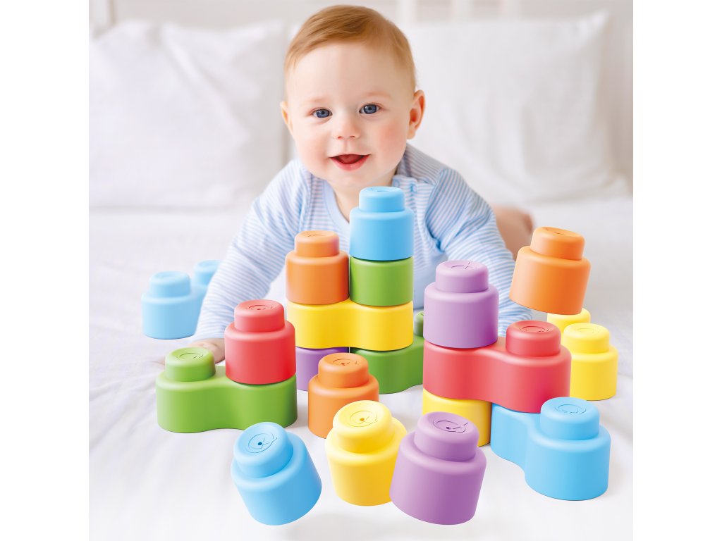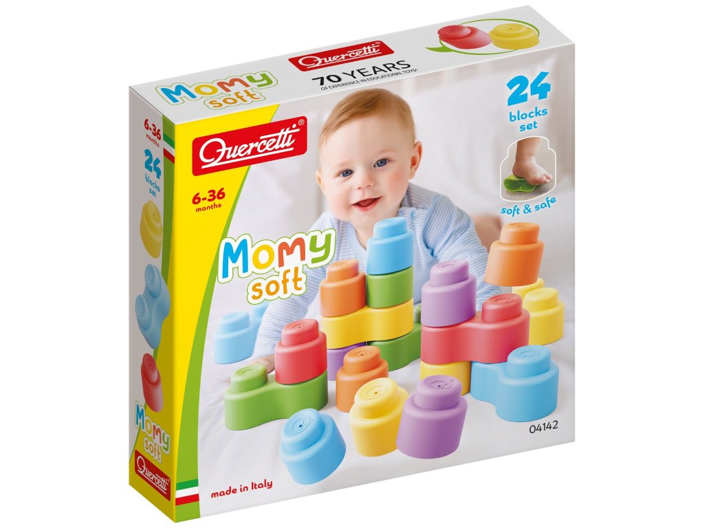 Momy Soft 24 je stavebnica s 24 dielmi určená najmenším deťom. Živé farby, zaoblené tvary a jednoduché spájanie dielov ponúkajú nekonečné kombinácie a zaručenú zábavu. Mäkký materiál je príjemný na dotyk a deti s ním ľahko manipulujú.