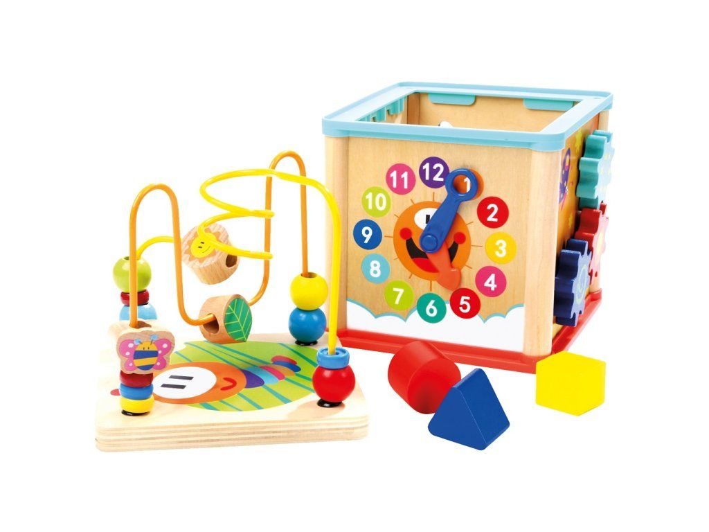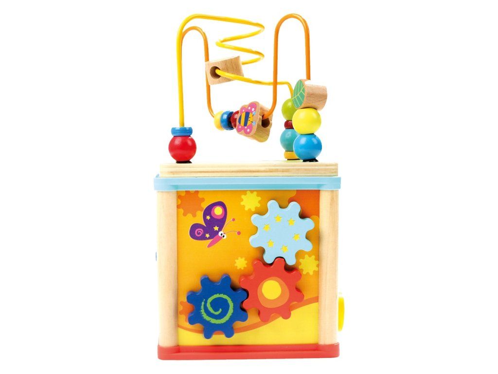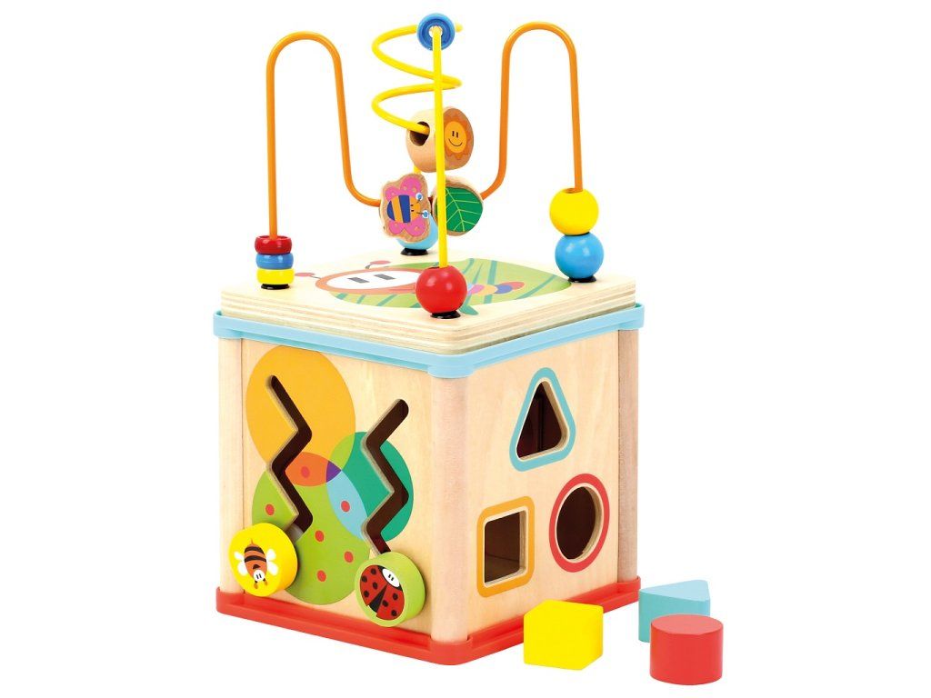 Na jednotlivých stranách kocky môžu deti rozvíjať vizuálne vnímanie, jemnú motoriku a logické myslenie. Vďaka premyslenému multifunkčnému dizajnu sa hravou formou učia rozoznávať základné tvary a farby.