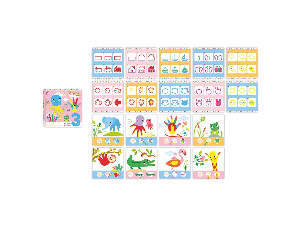Táto kreatívna súprava umožňuje deťom reprodukovať 10 kresieb krok za krokom na zmazateľnú tabuľu a dopĺňať 8 čiastočne ilustrovaných obrázkov obrysom ruky alebo prstov. Ideálna aktivita pre rozvoj trpezlivosti a jemnej motoriky.
