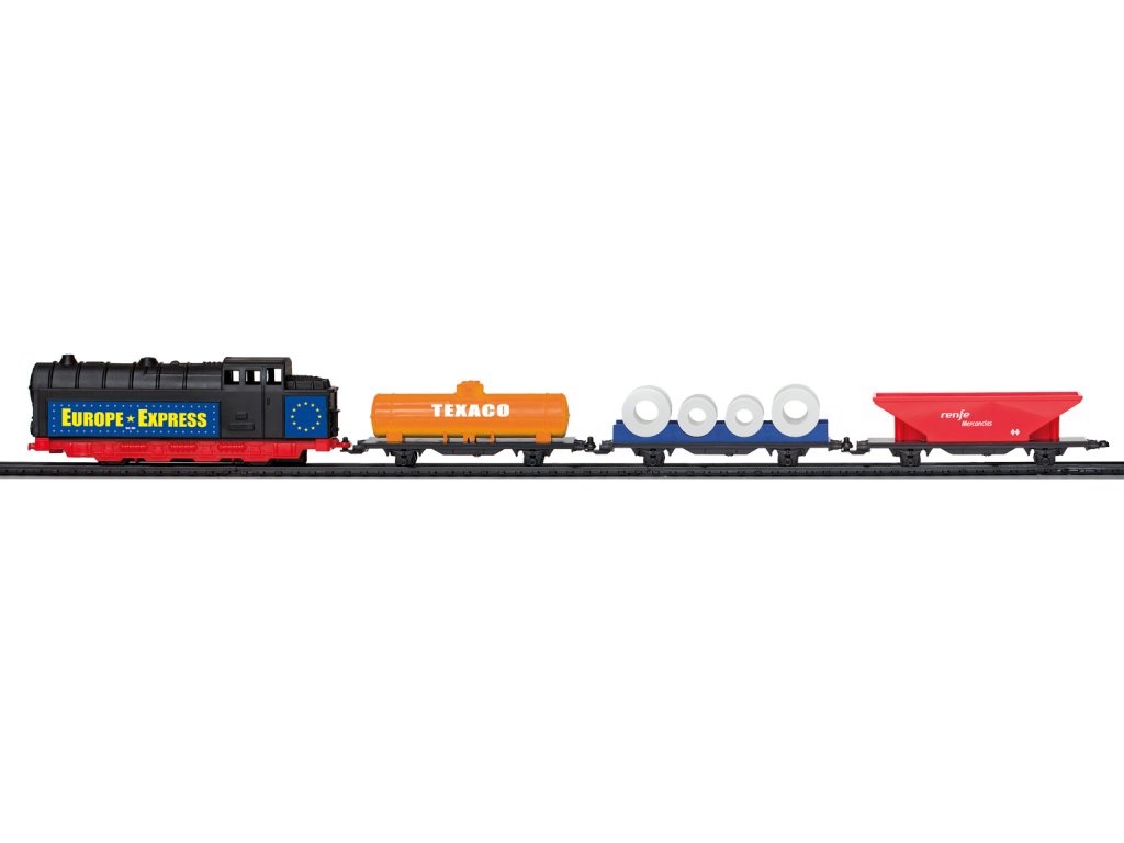 Nákladný vlak na batérie so svetlom a s 3 druhmi nákladných vagónov, ktorý jazdí po trati dlhej 2,94 m. Tento set prináša deťom zábavu a zároveň rozvíja ich predstavivosť a koordináciu pri hraní s vlakovou súpravou.