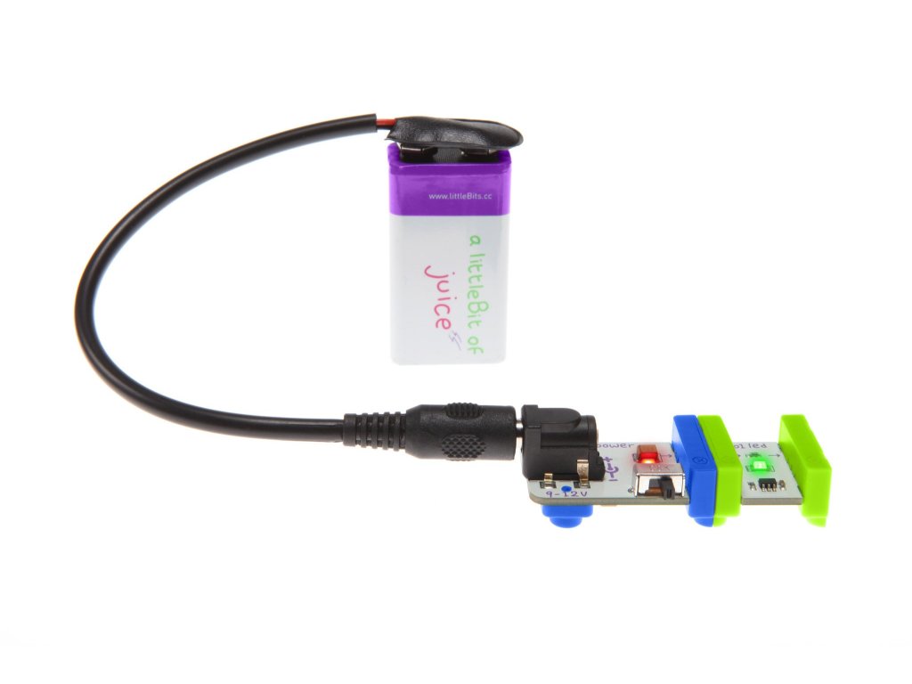 Spolu s 9 voltovým galvanickým článkom a vodičom (potrebné objednať zvlášť) dodá tento prvok do obvodu prvkov littleBits elektrickú energiu.