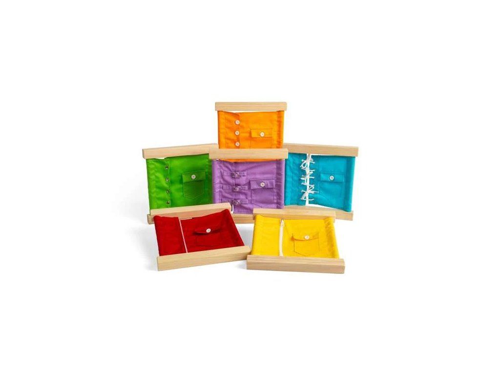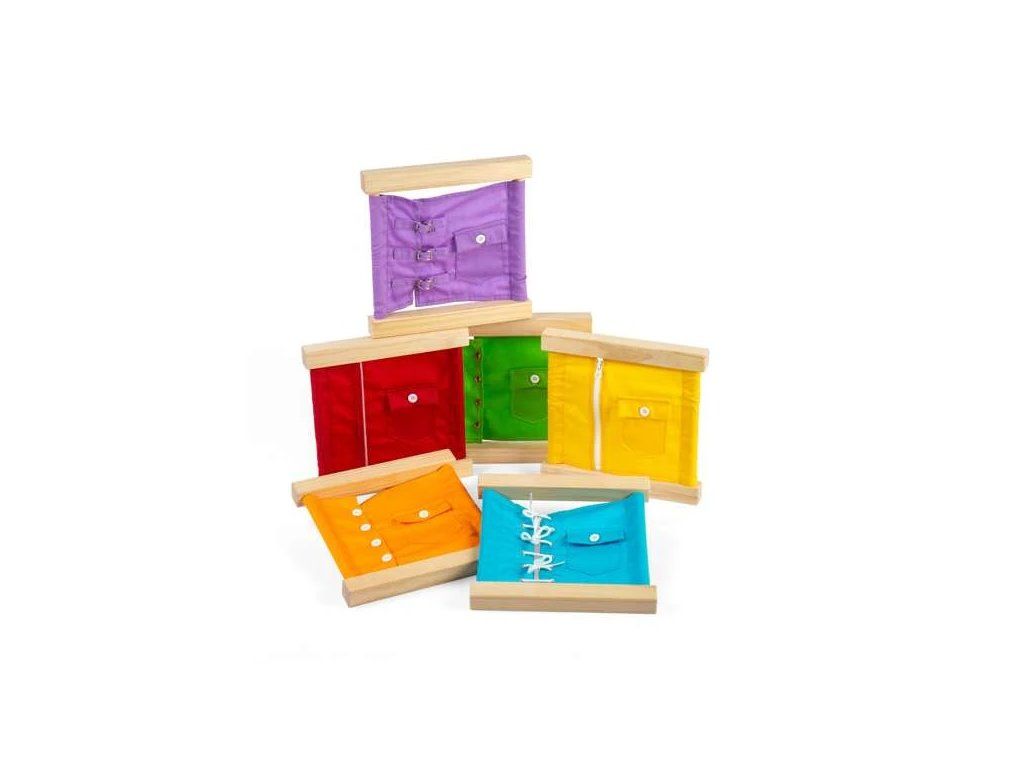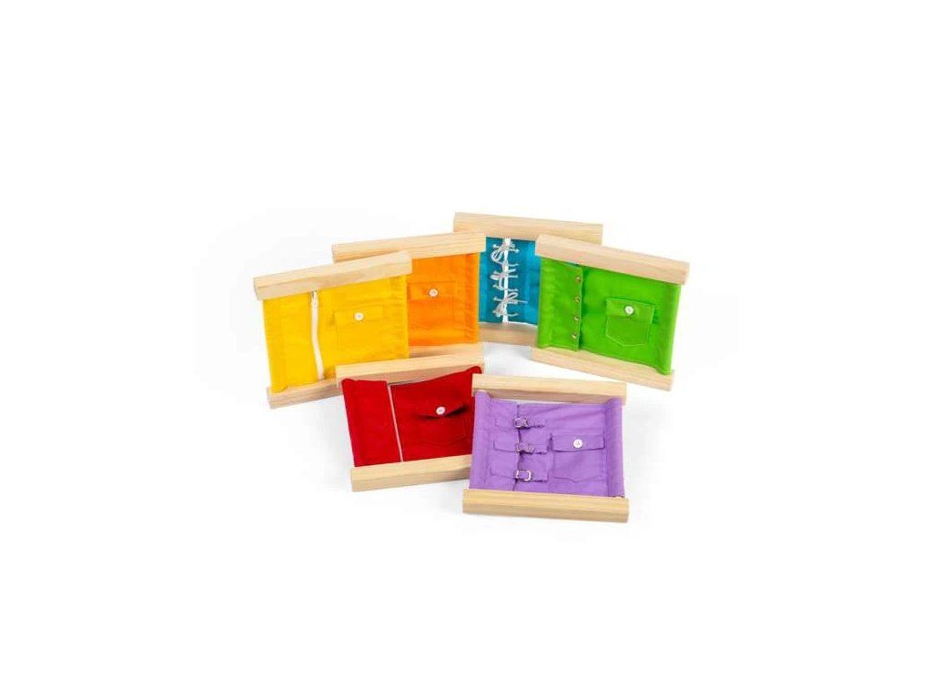 Každý rámik ponúka iný typ zapínania, takže si dieťa postupne osvojí všetky bežné mechanizmy, s ktorými sa stretne v každodennom živote.