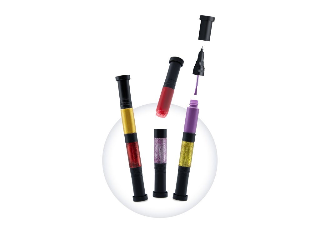 Naneste lak na nechty štetcovým hrotom. Kreslite perovým hrotom! Objavte kreatívny spôsob úpravy nechtov pomocou multifunkčných pier, ktoré kombinujú presné nanášanie aj detailné zdobenie.