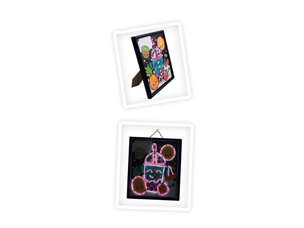 Vytvorte neónový obrázok s ovocným, farebným bubble tea na ozdobenie izby! Vytvorte si štýlovú svietiacu dekoráciu plnú farieb, ktorá dodá izbe hravú a modernú atmosféru.