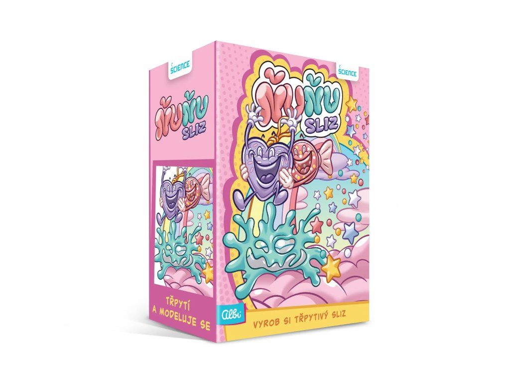 Vytvorte vlastné farby a objavte štruktúru slizu! Kreatívna vedecká súprava umožňuje deťom kombinovať farby, trblietky, hviezdičky a guličky a tvoriť originálny sliz a plastelínu.