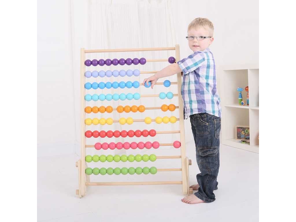 Obrovské počítadlo s 100 korálkami. Vďaka korálkam v jemných farbách a robustnému drevenému rámu je toto tradičné drevené počítadlo vhodné pre učenie aj hranie. Desiatka riadkov s desiatimi korálkami – začnite počítať! Vyrobené z vysoko kvalitných a zodpovedne získaných materiálov. Spĺňa aktuálne európske bezpečnostné normy. Vyžaduje montáž dospelými.