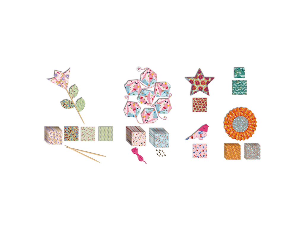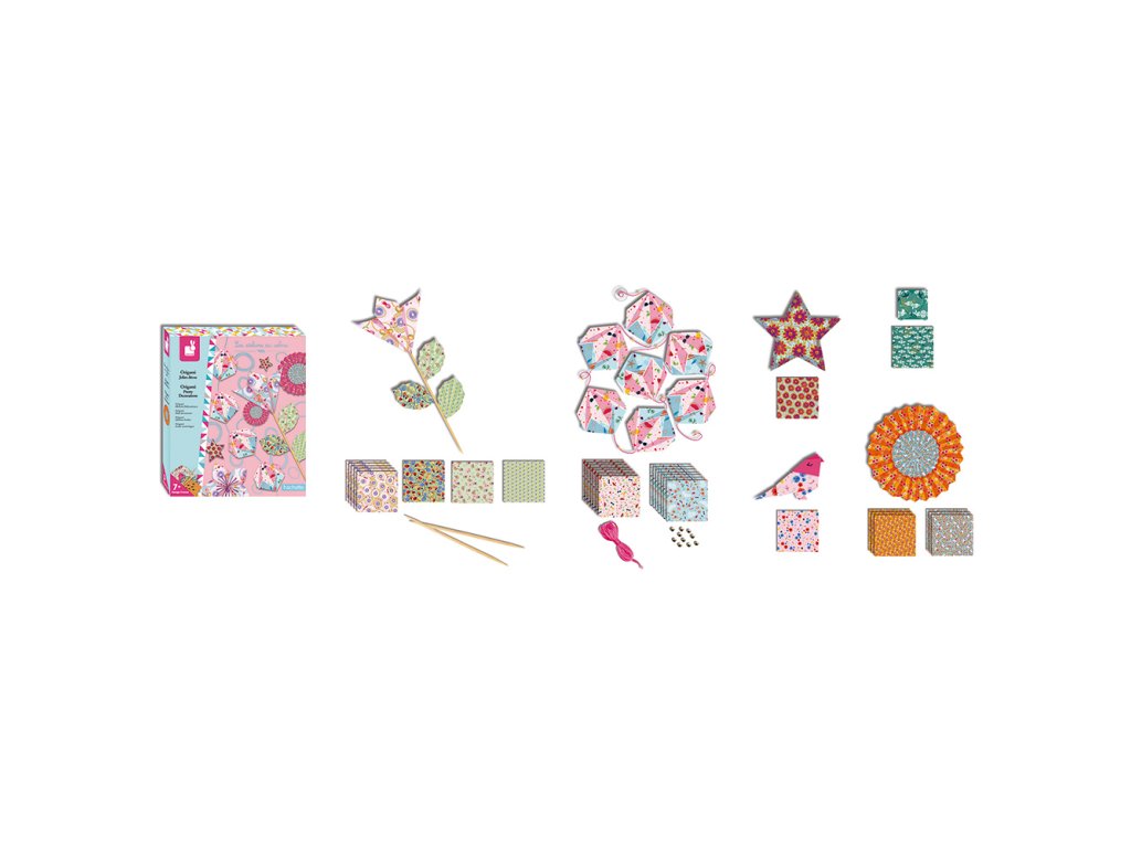 Balenie obsahuje 70 hárkov prekrásne ilustrovaného origami papiera, 3 metre špagátu na vytvorenie girlandy, 10 guľôčok a 2 drevené špajle. Sada Janod Atelier je určená na tvorenie, podporu zručnosti a predstavivosti u detí. Tieto kreatívne hračky sú vhodné na cesty aj doma, pri zdraví aj chorobe, a zabavia deti na dlhé hodiny.