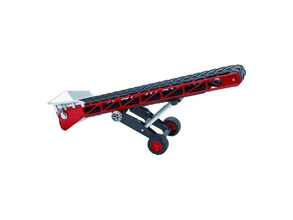 Dopravník má výškovo nastaviteľnú konštrukciu (násypná výška 11–31 cm) a je vybavený sklopnou ojkou.
