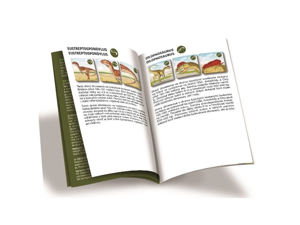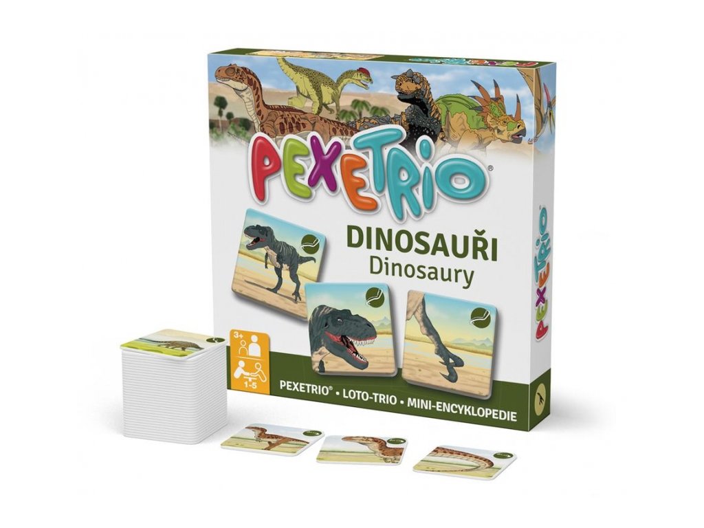 Pexetrio Dinosaury je hra, ktorá deti zároveň aj vzdeláva. Deti sa naučia spoznávať rôzne dinosaurami a rozlišovať ich pomocou ich typických znakov. Okrem toho, že si deti osvoja dinosaurami zábavným spôsobom, hra tiež napomáha rozvíjať ich logické myslenie a trénovať pamäť hľadaním trojice kartičiek s vyobrazením rôznych dinosaurov a ich typických znakov.