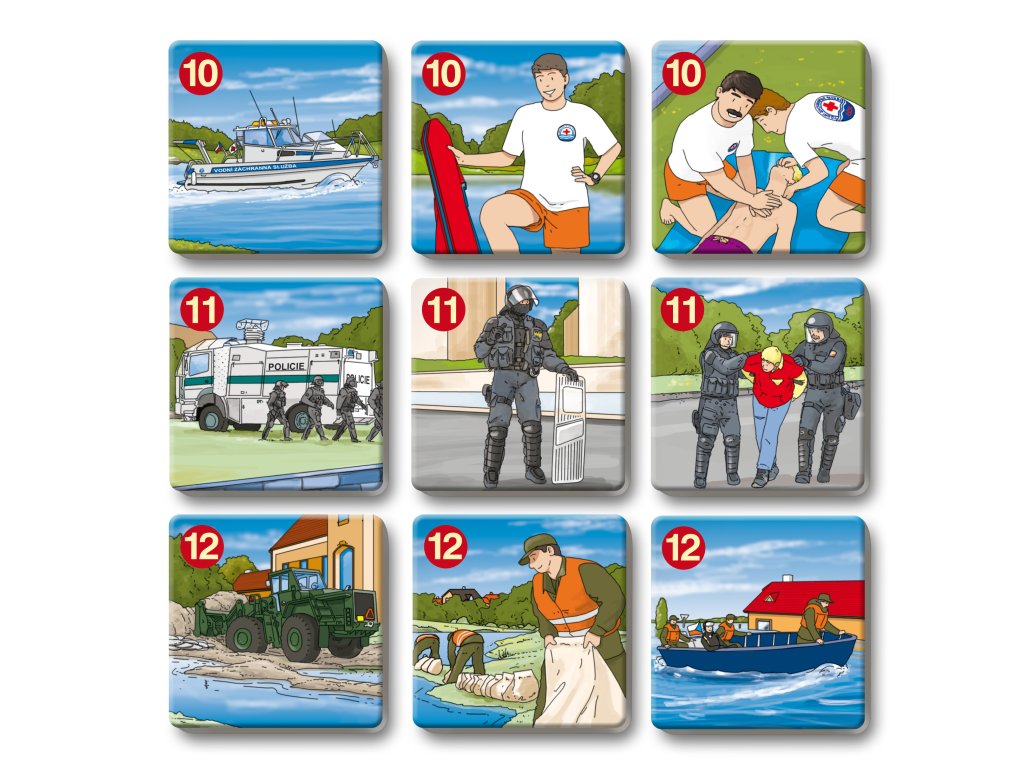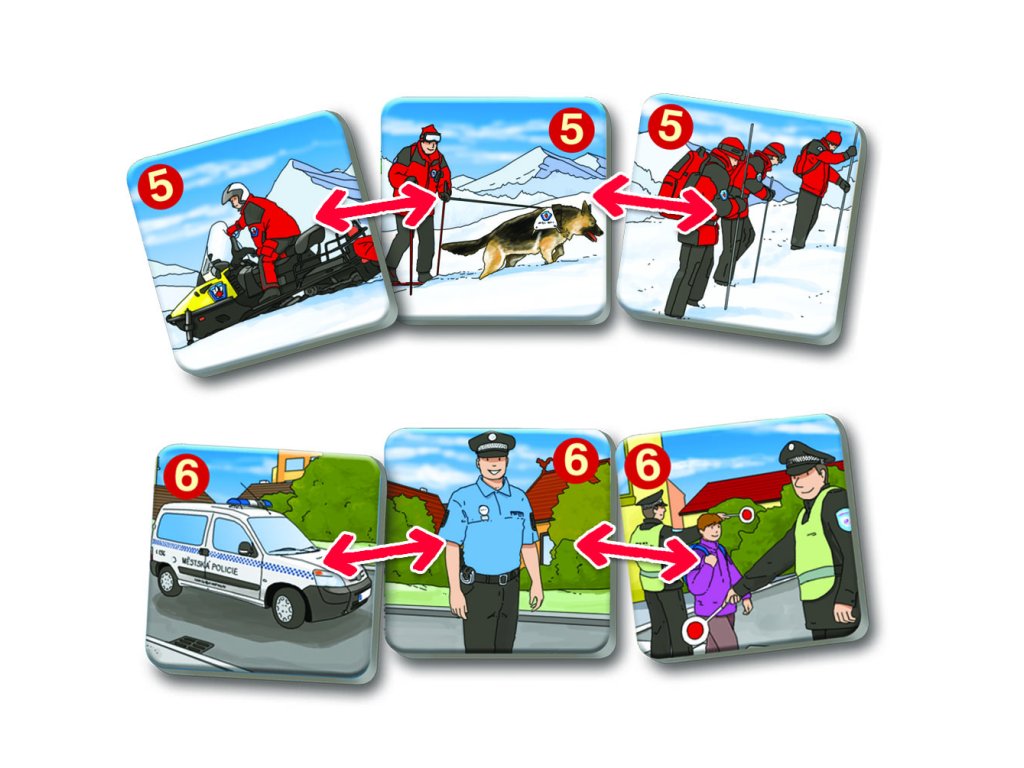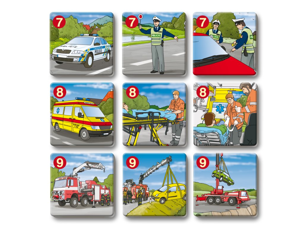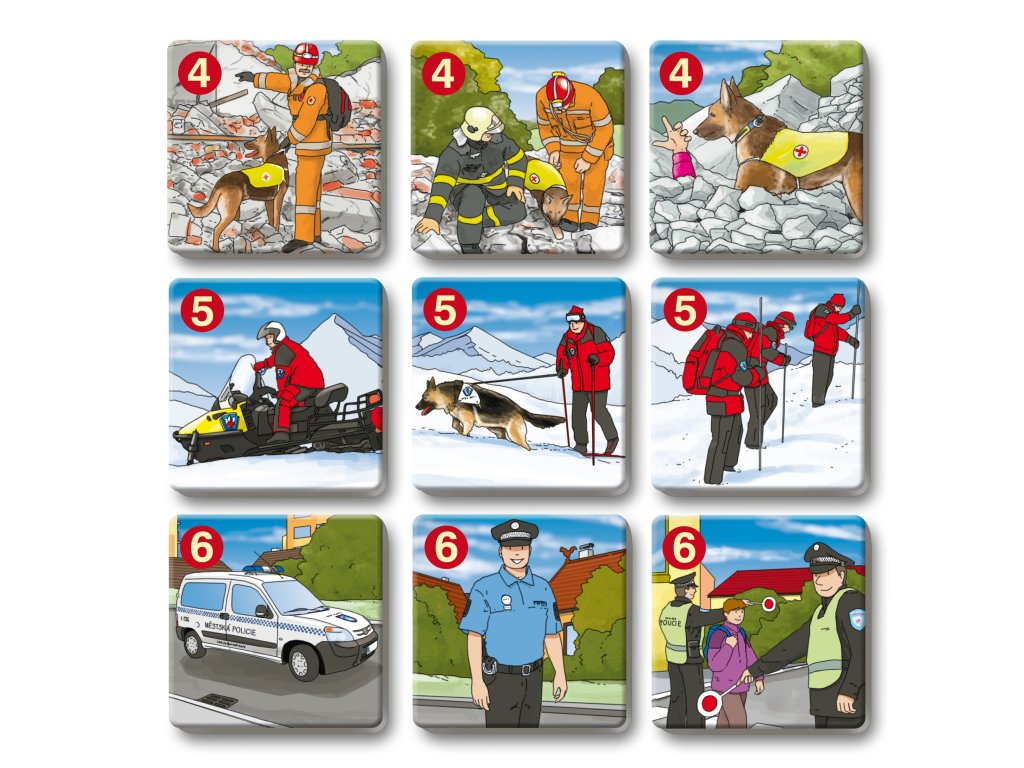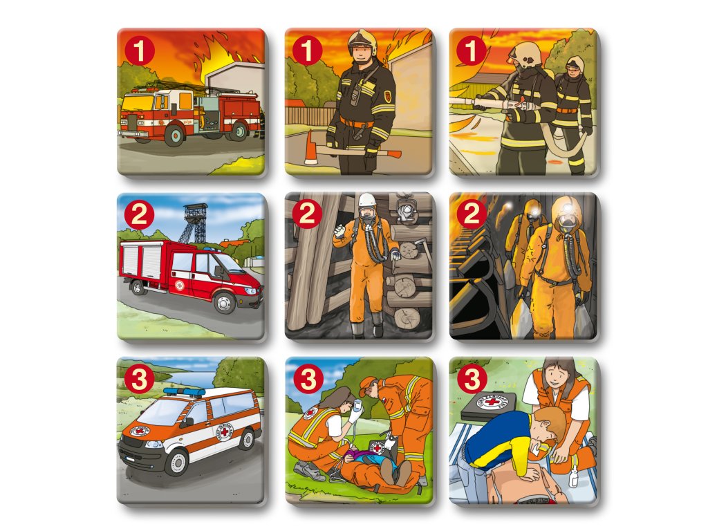 Hra rozvíja logické myslenie a pamäť tým, že deti hľadajú trojice kartičiek so záchranármi, ich odevmi, nástrojmi a technikou.