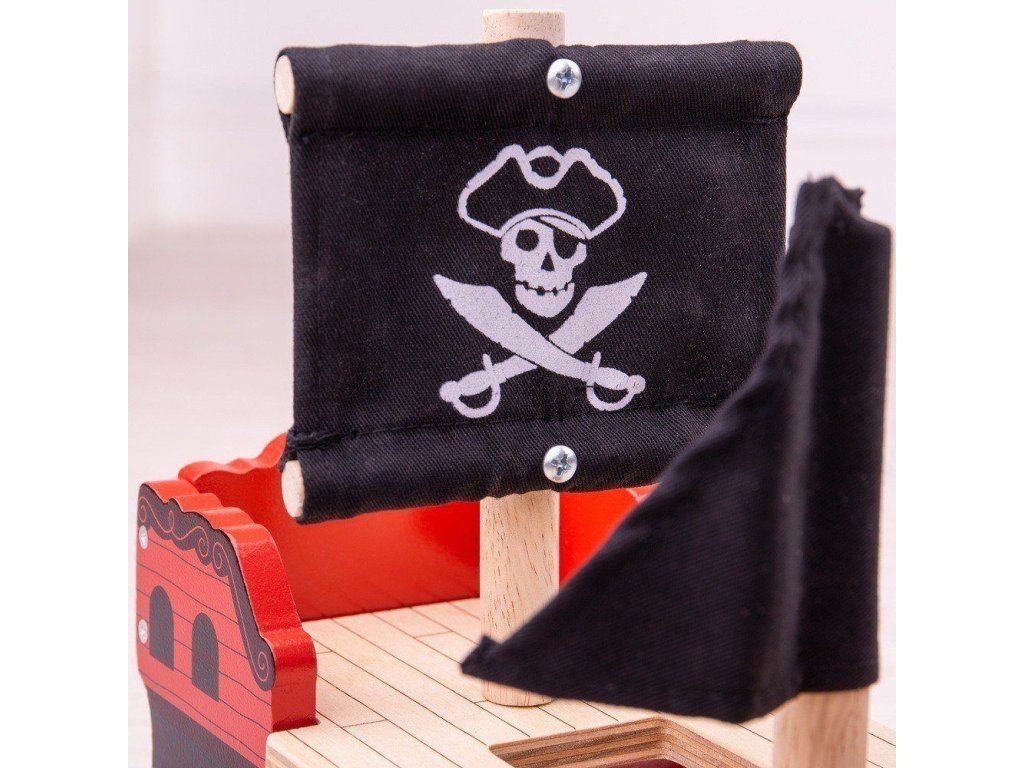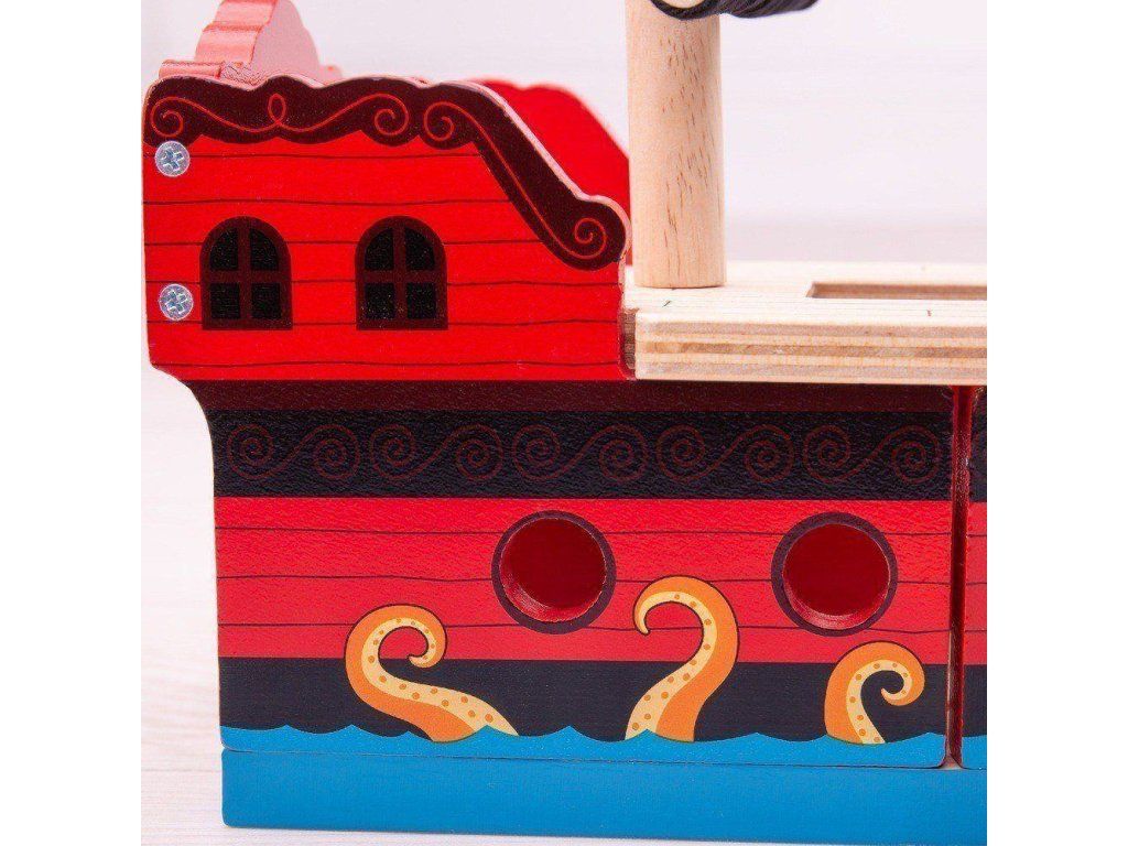 Táto drevená loď rozvíja detskú predstavivosť, zručnosť a koordináciu. Pevná a odolná pirátska loď deti povzbudí k tvorivej hre. Vyrobené z kvalitných materiálov zo zodpovedných zdrojov a spĺňa európske bezpečnostné normy.