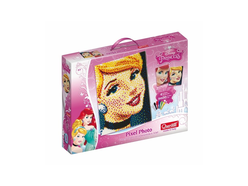 Vďaka Pixel Photo si môžete vytvoriť nádherné portréty princezien Popolušky a Ariel pomocou slávnych kolíčkov značky Quercetti. Kolíčky v 6 farbách vytvárajú úžasný optický jav – zo správnej vzdialenosti sa objaví plná škála farieb ako na skutočnej fotografii, inšpirovaná pointilizmom z konca 19. storočia.