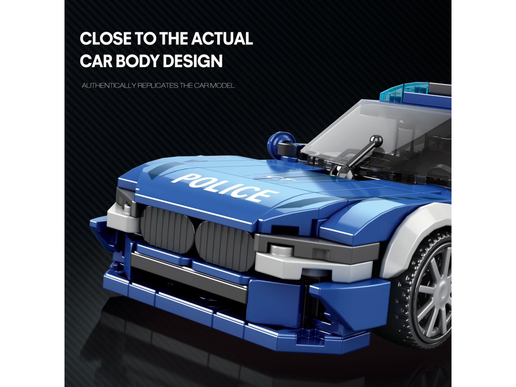 - Dizajn inšpirovaný policajným vozidlom BMW (bez licencie) – moderný služobný vzhľad mestských zásahových áut
