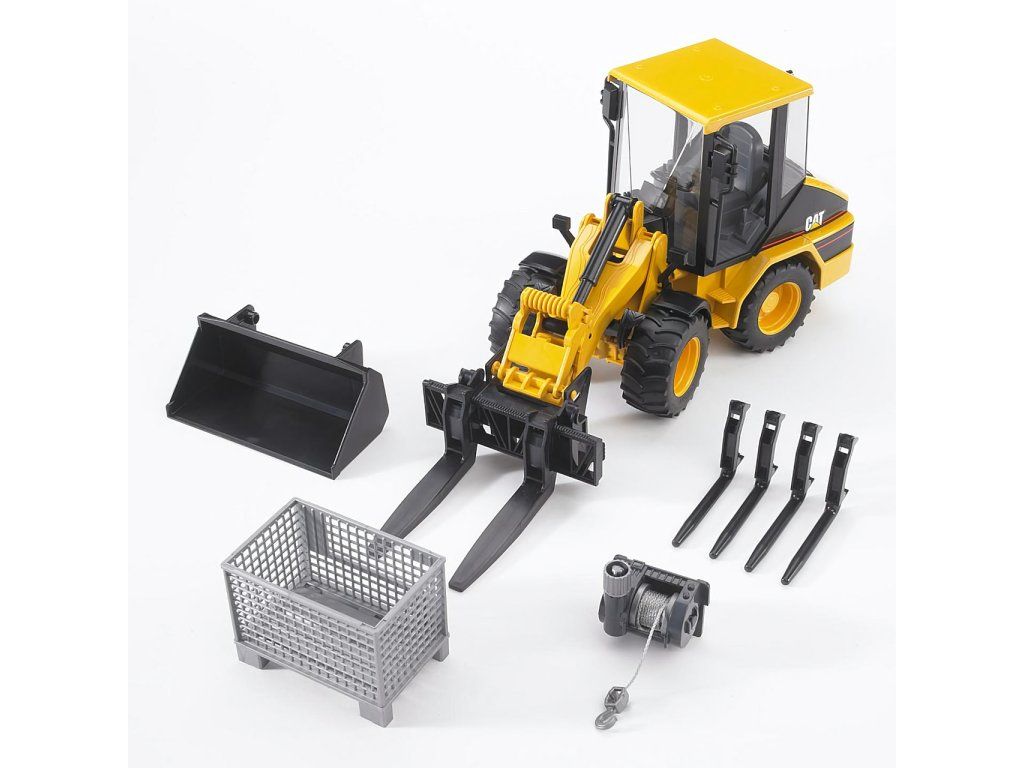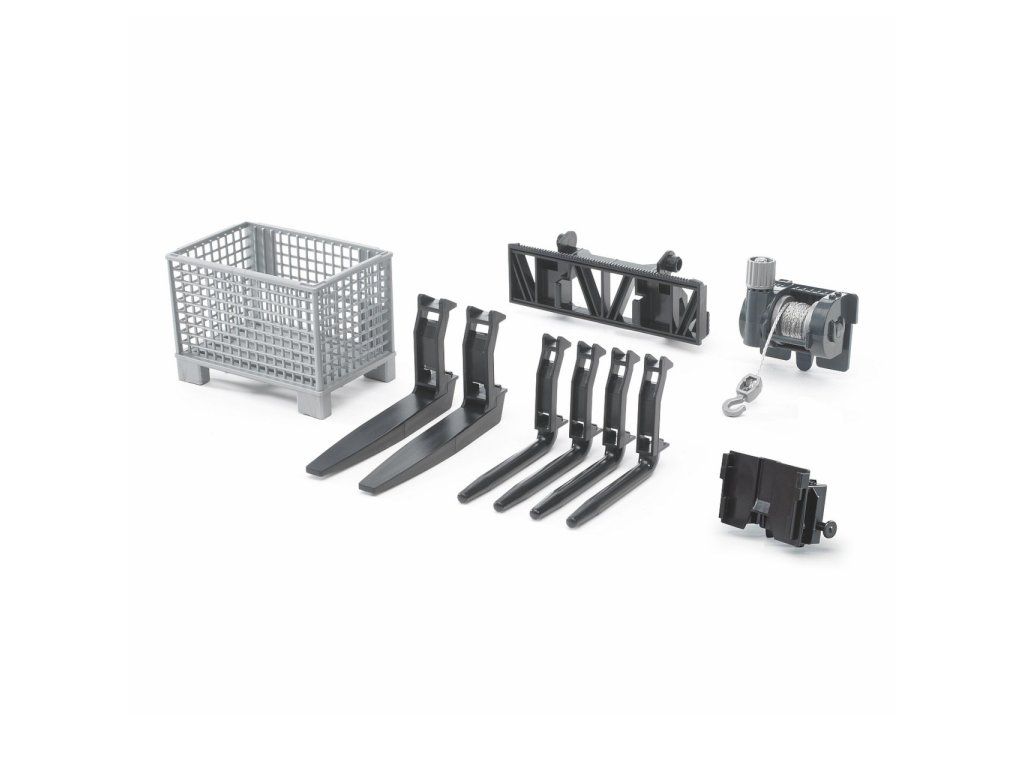 Sada, ktorá vám umožní prestavať nakladače na manipulátory s paletami a paletovými košmi, alebo použiť navijak pre takmer neobmedzenú priechodnosť terénom. Sada je vyrobená v mierke 1:16 podľa skutočných komponentov ako verná plastová kópia. Ide o veľmi kvalitné spracovanie nemeckej firmy BRUDER do najmenších detailov. Vyrobené v Nemecku z vysoko kvalitného ABS plastu – pružného materiálu s lesklým povrchom, precízne spracovaného bez akýchkoľvek otrepov či nedokonalostí.