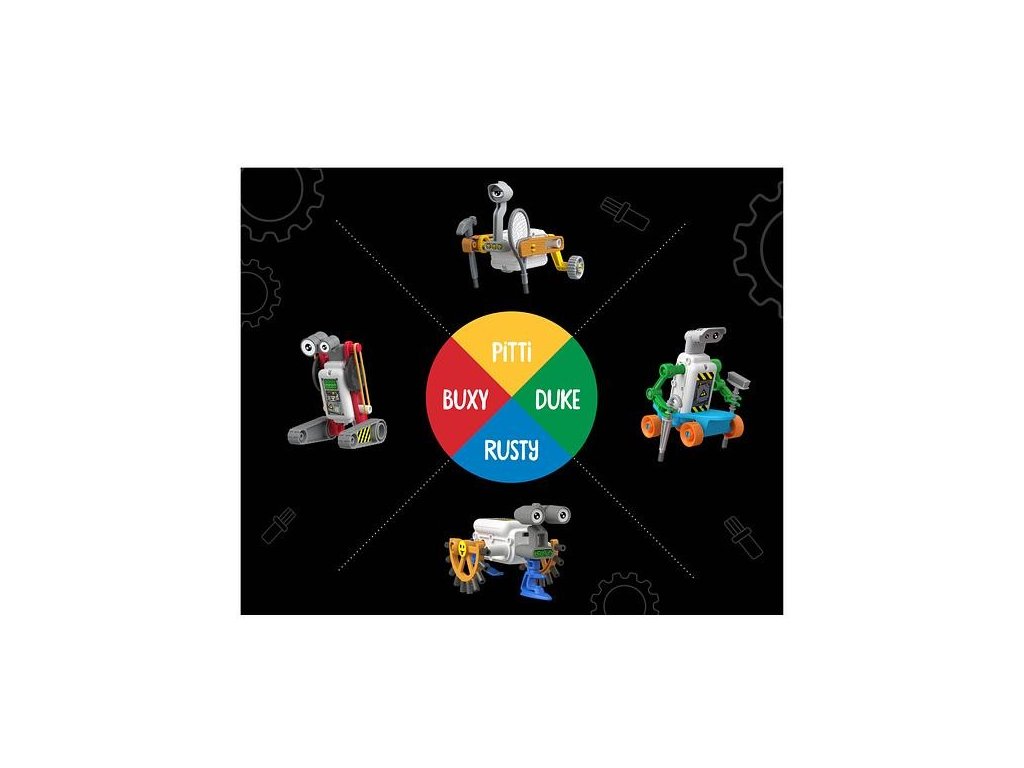 Vtipné bude, keď si Skákajúci robot Buxy vymení časti tela s časťami tela jeho troch kamarátov zo série Rebotz! Robo Gang Rebotz od nemeckého výrobcu KOSMOS, to sú 4 roboty zo šrotoviska, ktoré vdýchnu nový život starým dielom, z ktorých sú vyrobené. S parádnymi nálepkami, vďaka ktorým ReBotz vyzerá ešte drsnejšie!