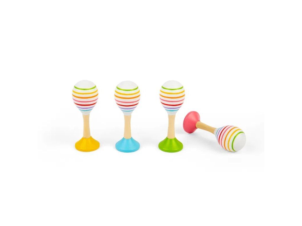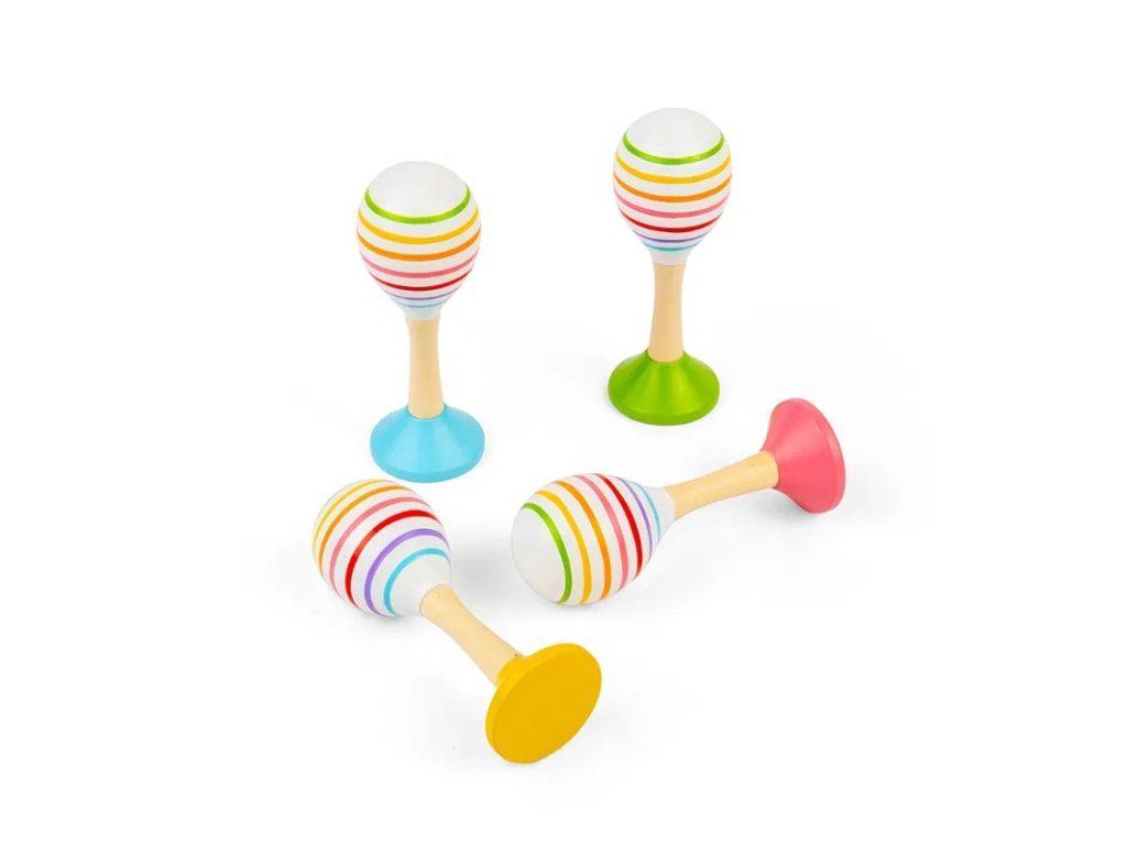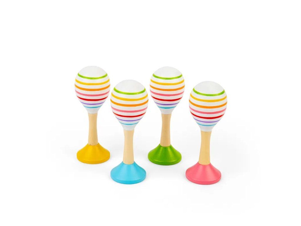 Hrkajte a užívajte si s deťmi prvotriednu hudobnú zábavu! Sada dvoch rumba gulí junior predstavuje ideálny úvod do sveta rytmu, zvukov a hudby. Hračky majú kvalitné spracovanie, hravý pruhovaný dizajn v kombinácii s prírodným drevom a veľkosť prispôsobenú najmenším detským ručičkám už od narodenia. Cena je uvedená za sadu 2 kusov.
