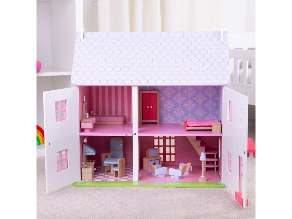 Domček má plne funkčné otváracie dvere, okná a navyše aj zadné posuvné dvere na terasu. Nábytok je možné presúvať podľa vlastnej fantázie, takže si deti môžu navrhnúť svoj vlastný domov.