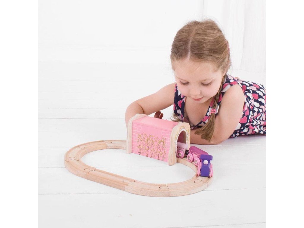 Drevený ružový železničný tunel s vysoko kvalitným povrchom je základným kameňom a originálnym rozšírením každej vláčikodráhy. Súčasťou balenia je všetko podľa obrázka.