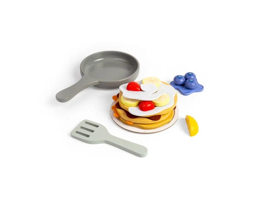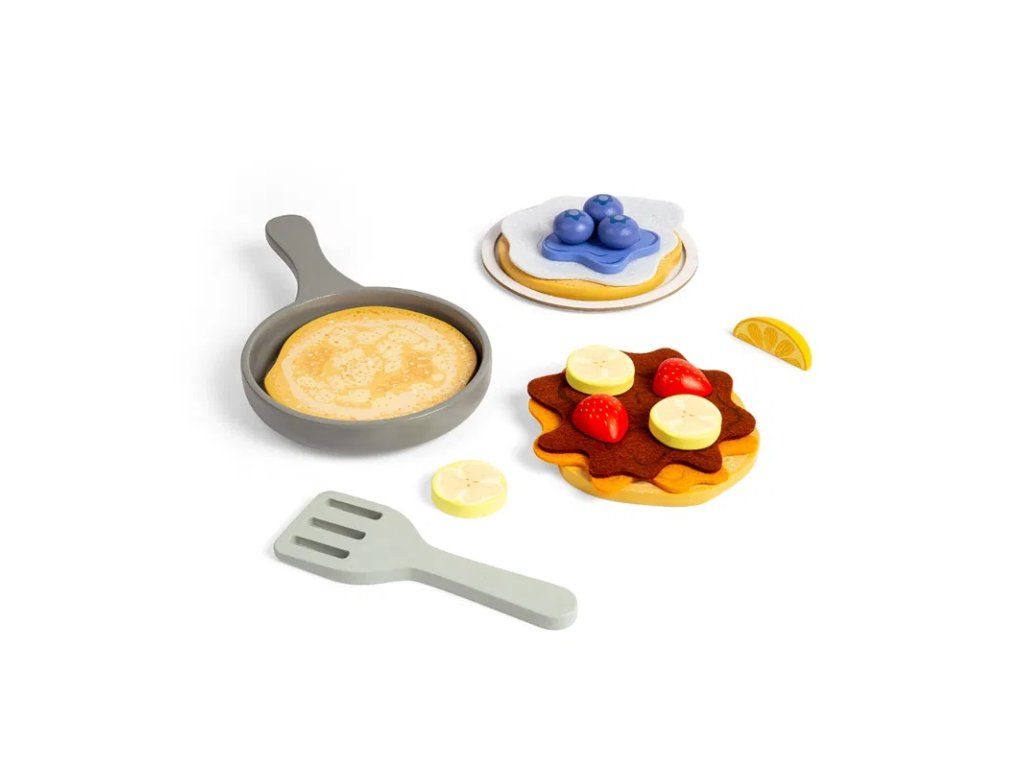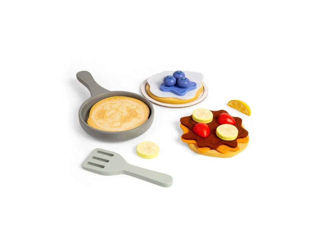 Hra na role je skvelý spôsob, ako rozvíjať sociálnu inteligenciu, jazykové schopnosti, kreatívne myslenie a komunikačné zručnosti. Manipulácia pri príprave palaciniek zároveň zlepšuje úchop, jemnú motoriku a koordináciu ruka–oko.
