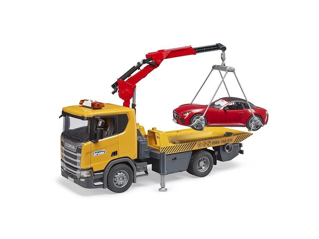 Odťahové vozidlá sú nevyhnutnými pomocníkmi v cestnej premávke – bez ohľadu na to, či ťahajú pokazené vozidlá alebo odstraňujú zle zaparkované autá. Odťahová Scania Super 560R je vybavená viacerými funkciami. Pri nakladaní áut môžete použiť žeriav, ktorý je možné vysunúť a ľubovoľne otáčať, alebo môžete jednoducho spustiť celú plošinu. Detailne spracovaná kabína nákladného vozidla má otvárateľné dvere a sklopné zrkadlá. Stabilitu zaisťujú oporné nohy.