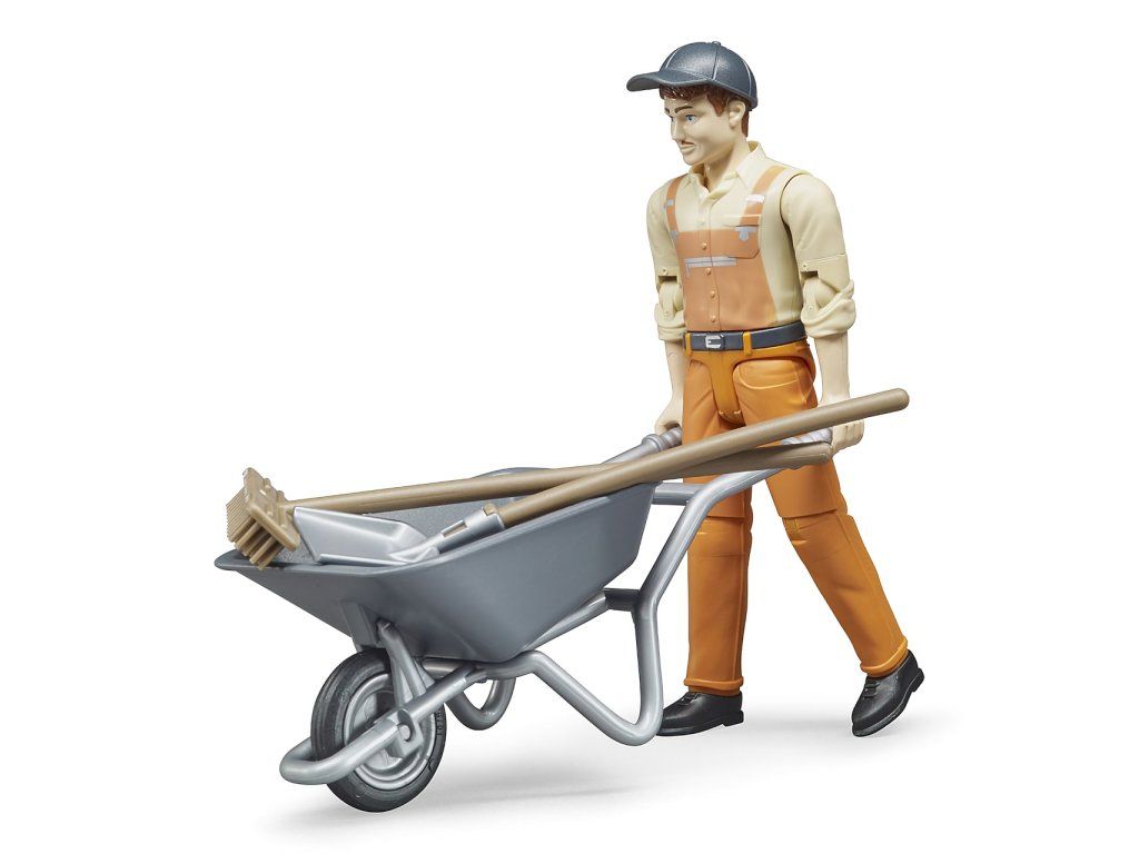 Drobné upratovacie práce na stavbách zabezpečí set Bruder 62130 s figúrkou a príslušenstvom.