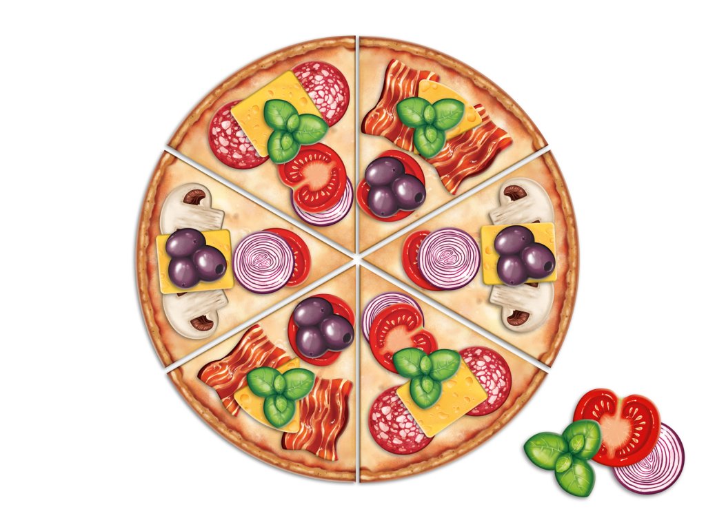 - Úspech? Teraz skúste usporiadať dva rovnaké kusy pizze.