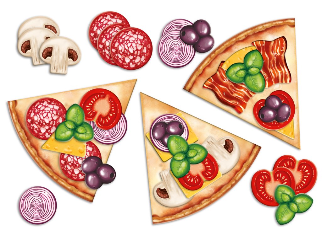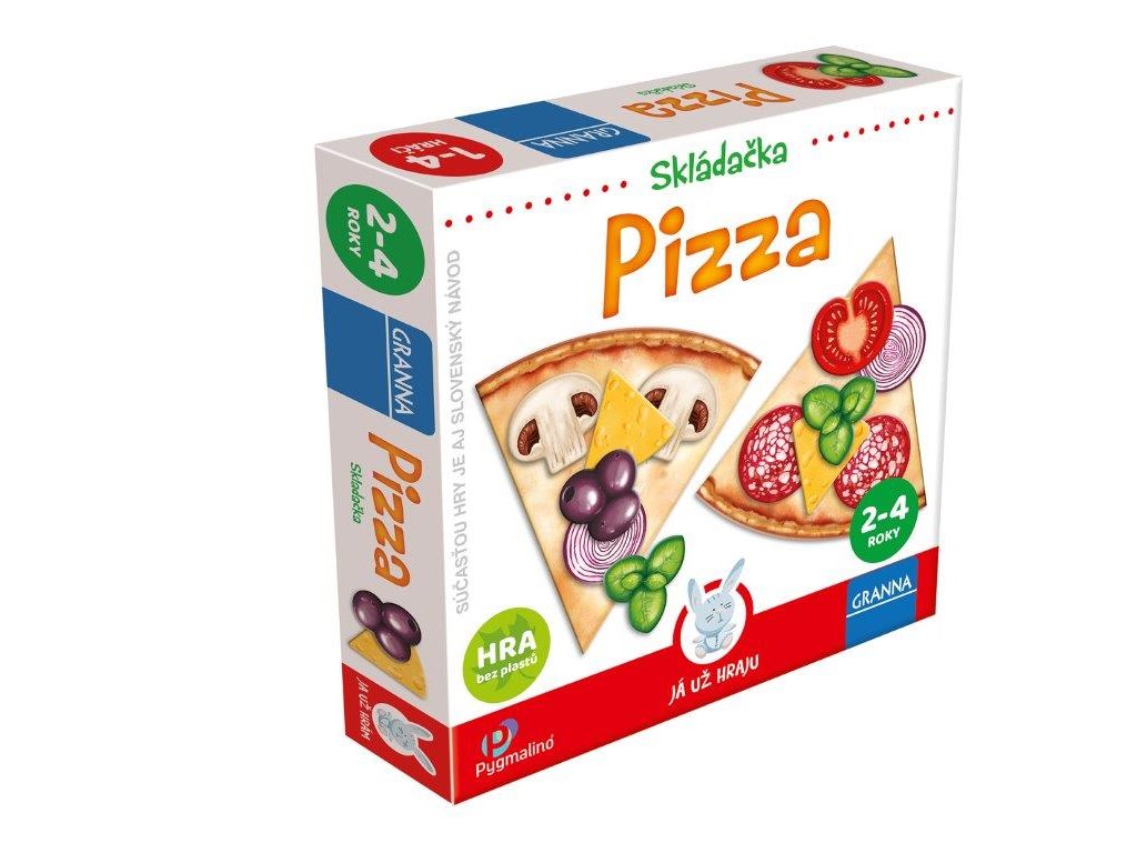 Pizza je originálna skladačka a hra v jednom pre deti od 2 do 4 rokov. Deti sa pri vytváraní rôznych variantov pizze naučia poznávať farby, potraviny, druhy zeleniny a zároveň rozvíjajú kreativitu aj vyjadrovacie schopnosti. Táto vzdelávacia skladačka neobsahuje žiadne plasty a je vhodná pre deti od 2 rokov.