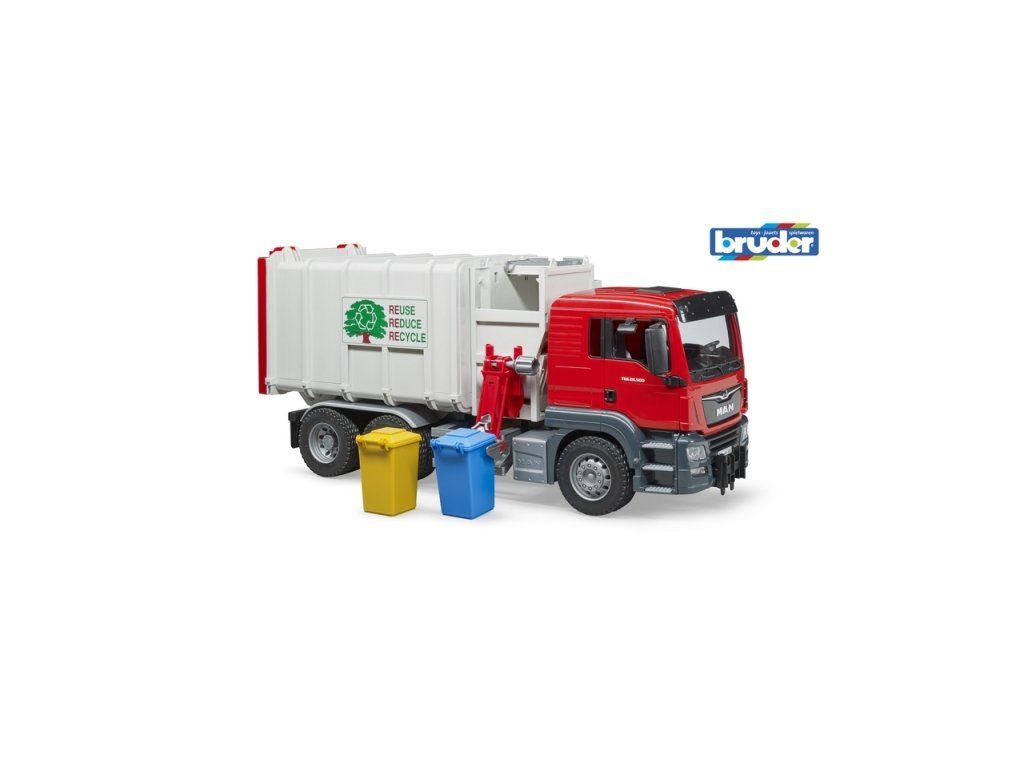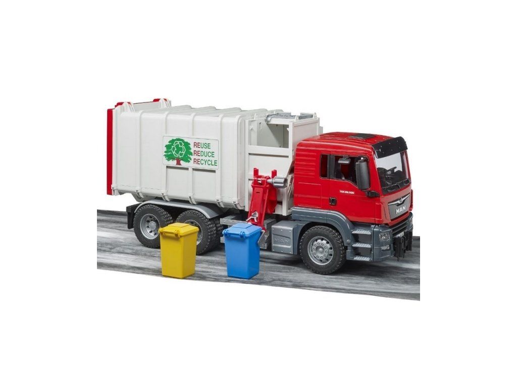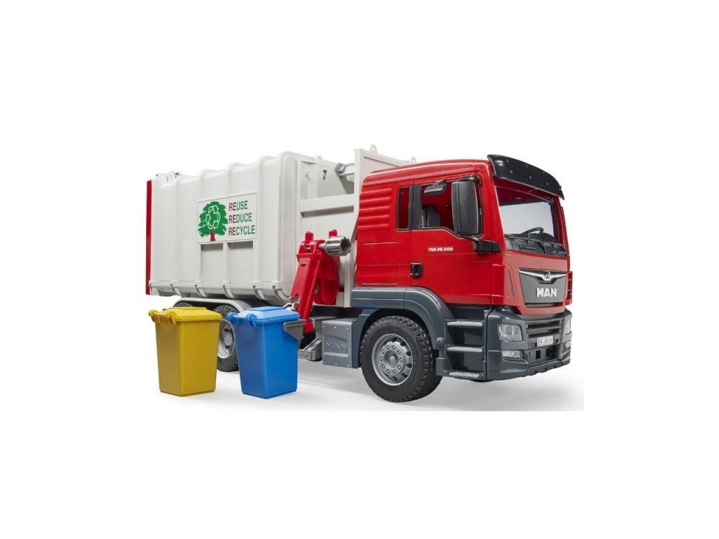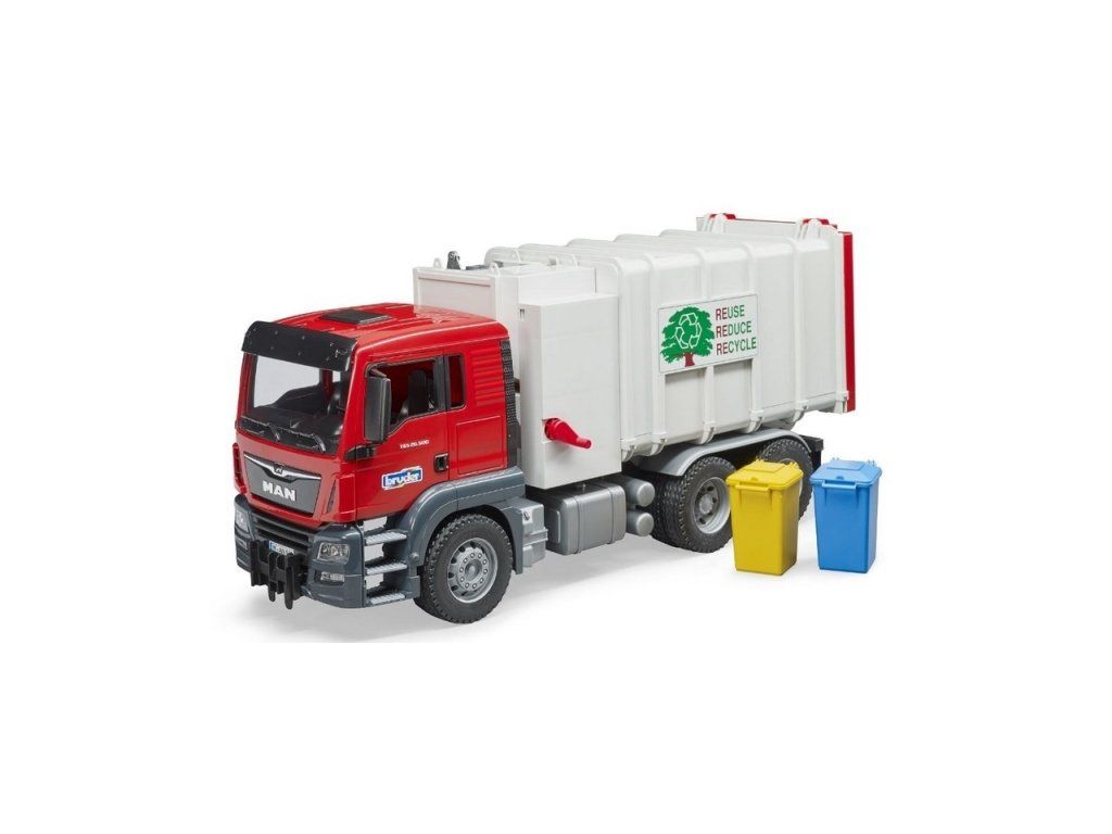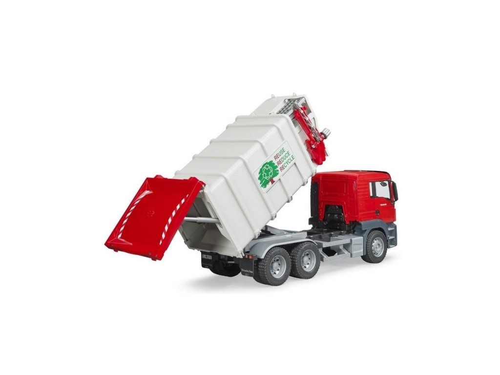 Snáď každý malý chlapec chcel byť niekedy smetiarom. S týmto štýlovým nákladným vozidlom MAN v šedo-červenom prevedení si to môže naplno vyskúšať.