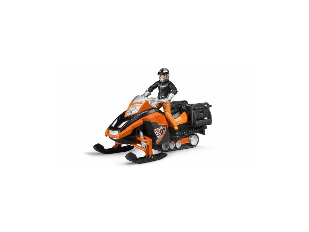 Oranžový snežný skúter s figúrkou ponúka množstvo realistických funkcií pre zimné dobrodružstvá v svete Bruder.