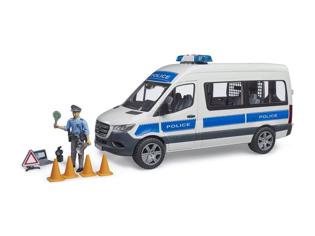 Mercedes-Benz Sprinter je obľúbeným vozidlom polície. Je spoľahlivý a multifunkčný, preto sa pravidelne zúčastňuje rôznych zásahov a operácií. Pre ešte väčší zážitok z hry je model vybavený príslušenstvom vrátane figúrky policajta a svetelno-zvukovým modulom.