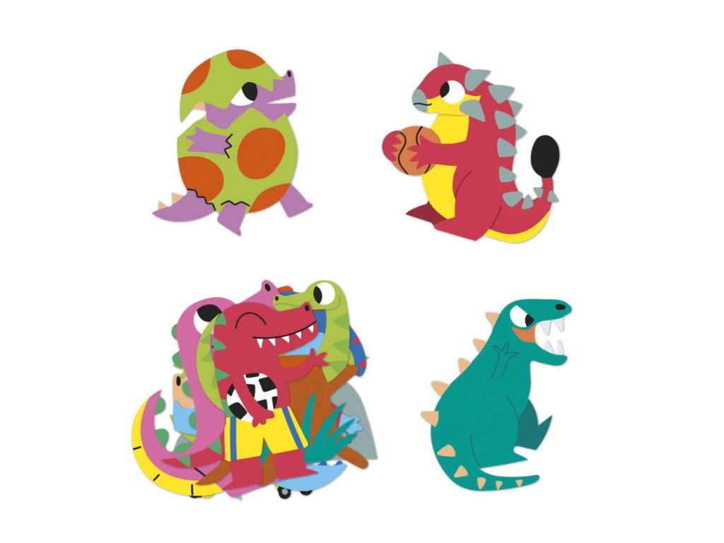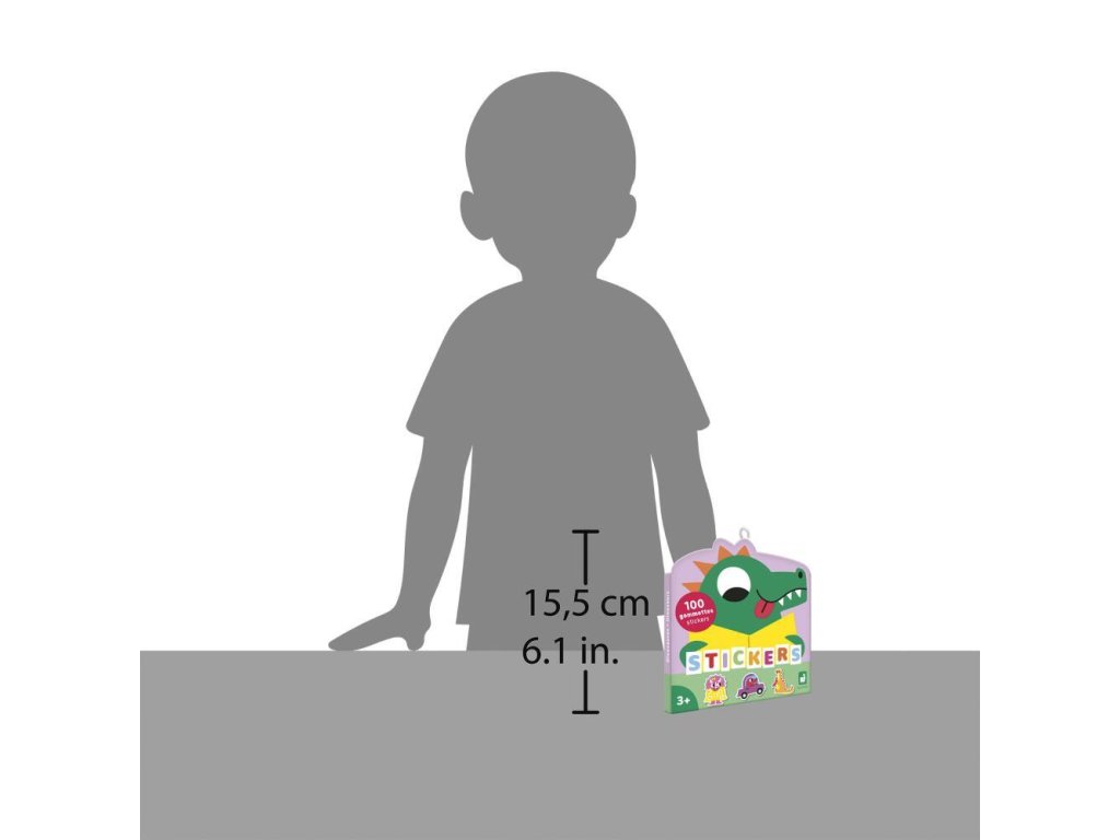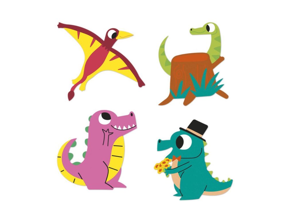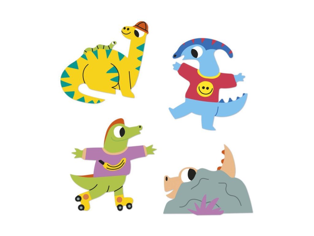 Samolepky sú farebné, zobrazujú zábavné dinosaury a polovica z nich má neónovo žlté detaily, ktoré im dodávajú jedinečný charakter. Vďaka zárezu na spodnej strane sa ľahko odlepia a sú ideálne pre malé deti od 3 rokov.