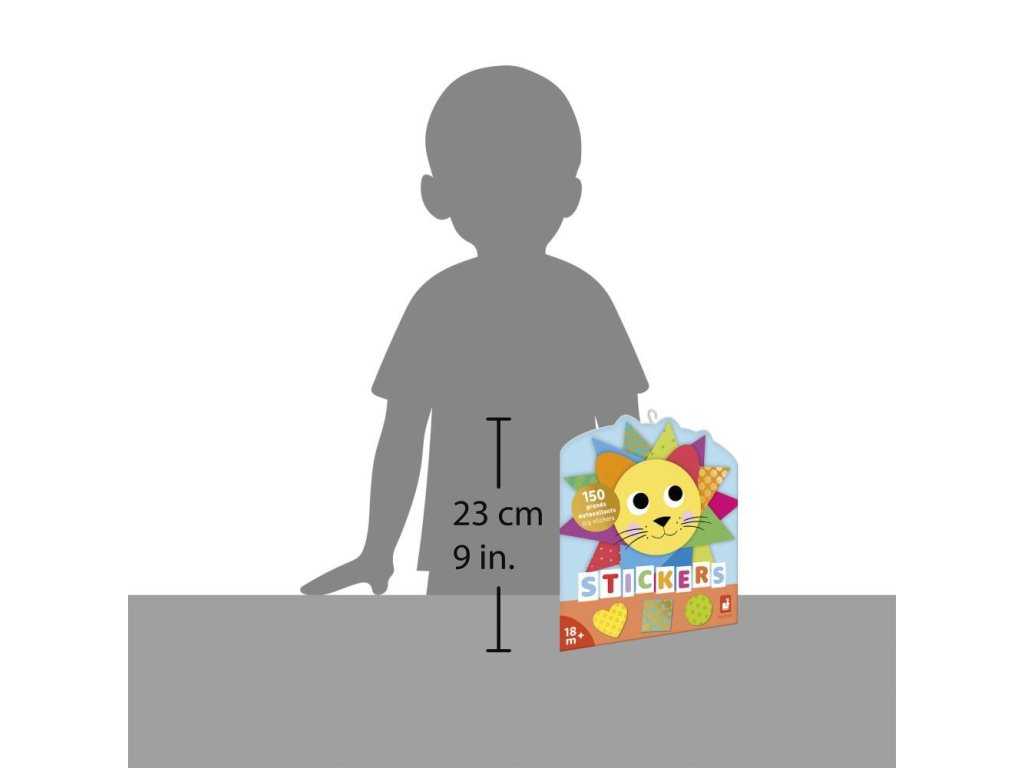 Nálepky sú vhodné pre deti od 18 mesiacov, majú optimálnu veľkosť pre malé ručičky a sú dostupné v rôznych geometrických tvaroch a farbách. Polovica nálepiek má lesklý kovový povrch, ktorý im dodáva jedinečný vizuálny efekt. Aktivita podporuje kreatívnu hru a rozvoj jemnej motoriky, presnosti pohybov, schopnosť stavať a navrhovať, ako aj predstavivosť a kreativitu.