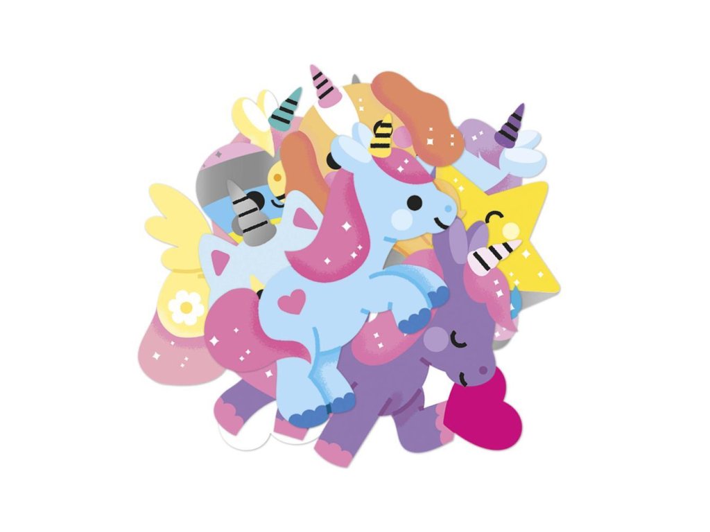 S toľkými nálepkami sa deti môžu zabaviť na dlhú dobu! Otvorte pekný balíček v tvare jednorožca a objavte vesmír inšpirovaný krásnym svetom jednorožcov: hviezdy, dúhy, jednorožce a ďalšie roztomilé zvieratká. Nálepky sú navrhnuté pre malé ručičky (cca 5 x 5 cm) a polovičný strih zjednodušuje uchopenie. Na 50 nálepkách je krásny strieborný efekt, ktorý dodáva hravej aktivite extra lesk.