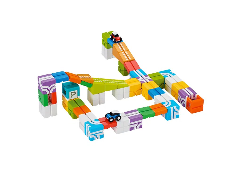 Hra prirodzene podporuje rozvoj detí a prináša veľa zábavy pri stavaní aj pretekaní.